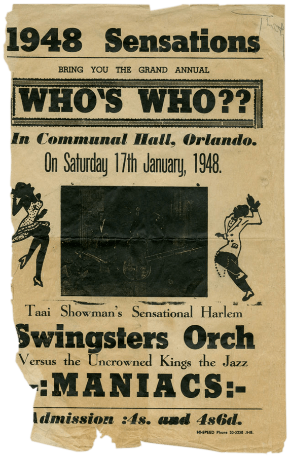 Edmund “Ntemi” Piliso: It was another name for the Alexandra All Stars Band. At one stage in the late ‘50s, we felt that the band’s name was going down a bit, and Rupert Bopape[9]Bopape was a legendary record producer, but one with a reputation for being an intellectual-property thief. Many songwriters accuse him of copyrighting their compositions under his own name and regularly naming himself as the composer on the record label. At the time Ntemi is referring to, Bopape was with EMI. felt that maybe, for commercial reasons, it would pick up with a new name. So we thought, let’s call it the Sofasonke Swingsters. Sofasonke was the name of the party started by James Mpanza, the prominent leader who encouraged people to build the first shacks in protest against the lack of housing. So people decided to build shacks and stay in the shacks. This happened in Number 2 Square, in Alexandra, and people also went from Alexandra to Moroka Township in Soweto and did the same there. I think I must have chosen that name for the band because I felt this guy Mpanza was something special, something different from other people. He just did something that nobody thought of.
