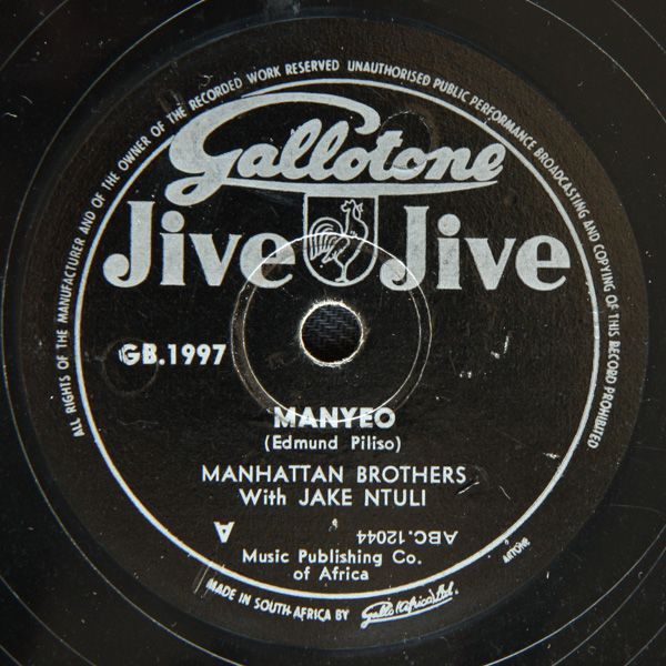 Edmund “Ntemi” Piliso: Yes, I composed the whole thing, including the words and all the harmonisations and everything. The whole thing; but for the recording I didn’t get a cent. No royalty. And it is a good piece! I’d forgotten all about it until you played the recording for me now. Manyeo is like when you are speaking to a particular woman. She promised to marry, but now she is doing things against her promise. That’s the gist of the whole thing. Well, I was a young guy, I was disappointed by some woman. She didn’t fulfil her promise. So it came from my own experience as a young guy. I started the piece with a vocal group, the Lebona Brothers. Aaron Lebona’s brothers used to sing, and Aaron was the pianist. I composed it for them. We were doing concerts at the time. I remember that later the Manhattan Brothers asked me for permission to do it. So I thought, well, you can just as well sing it, because royalties were non-existent at the time.