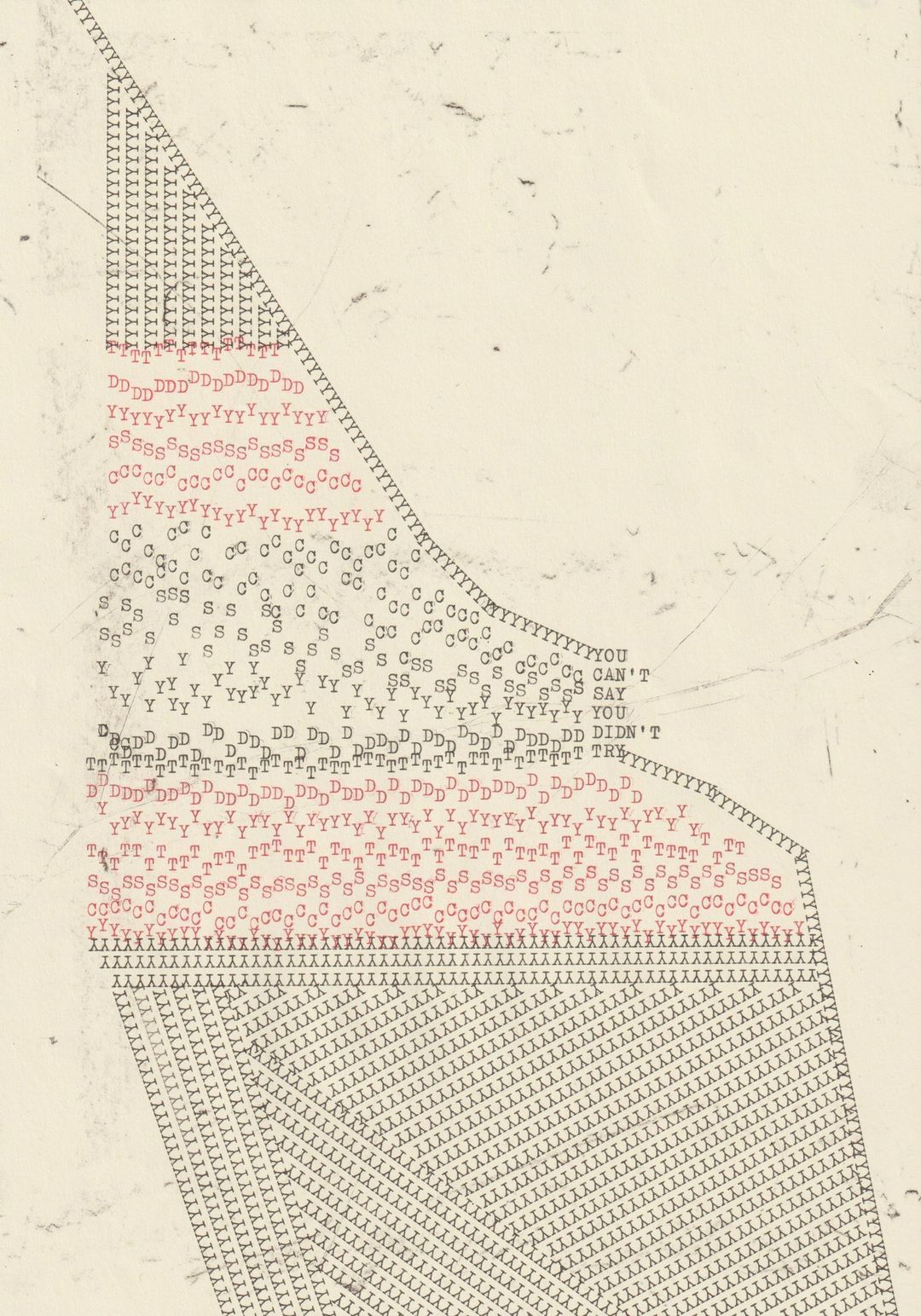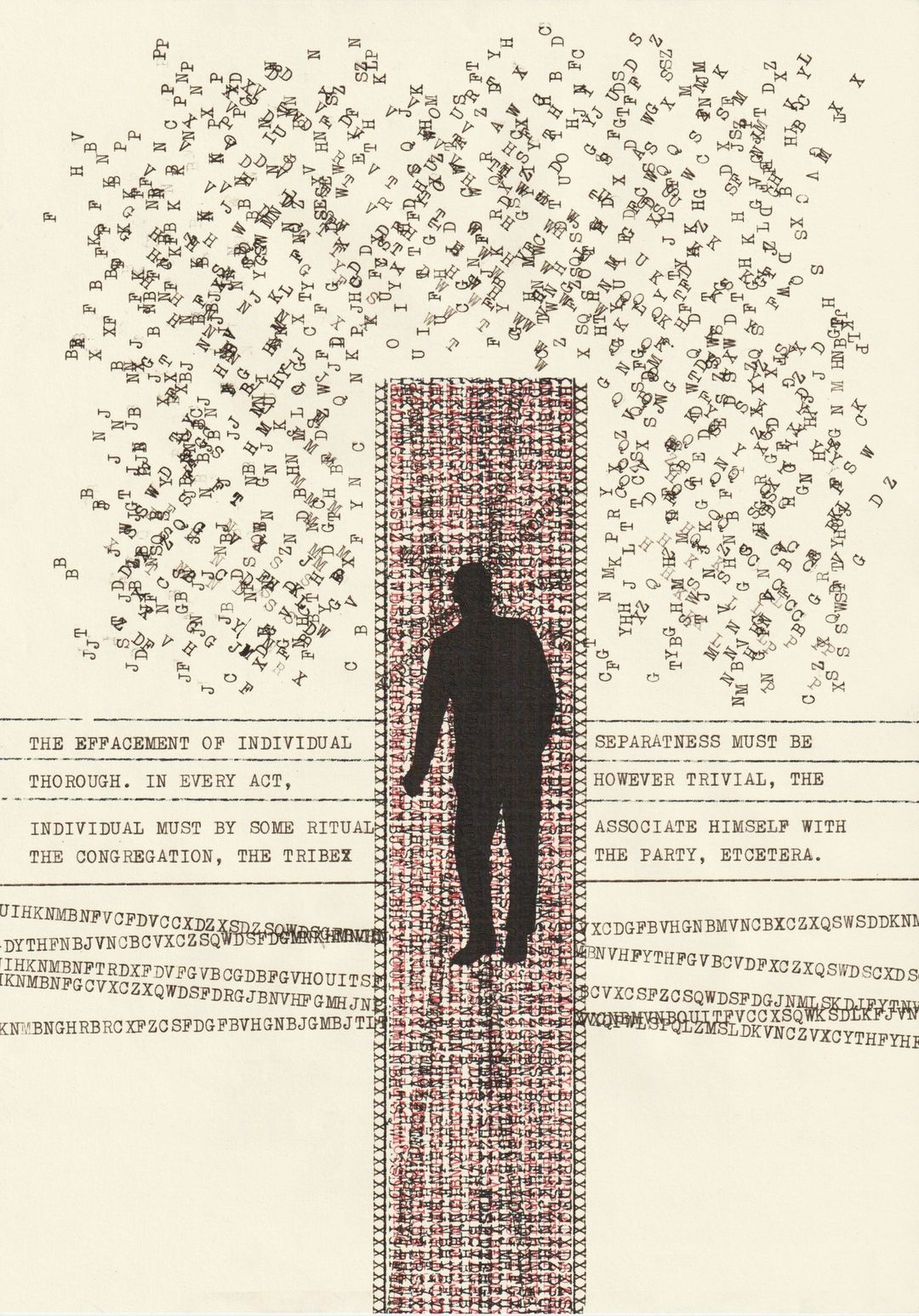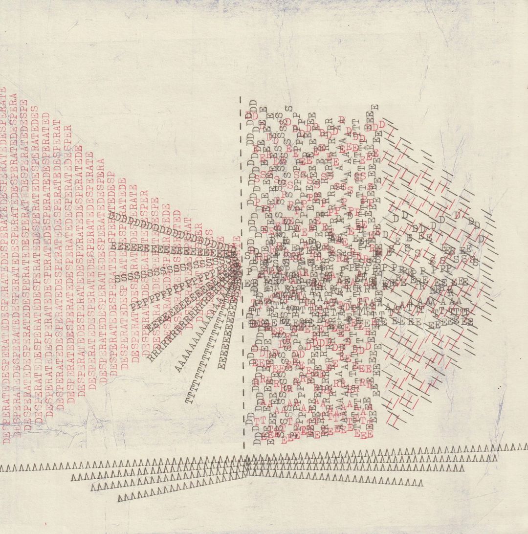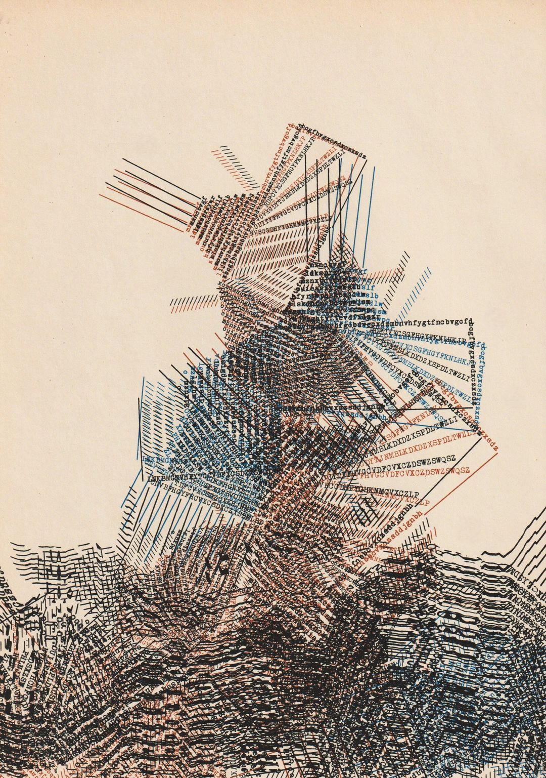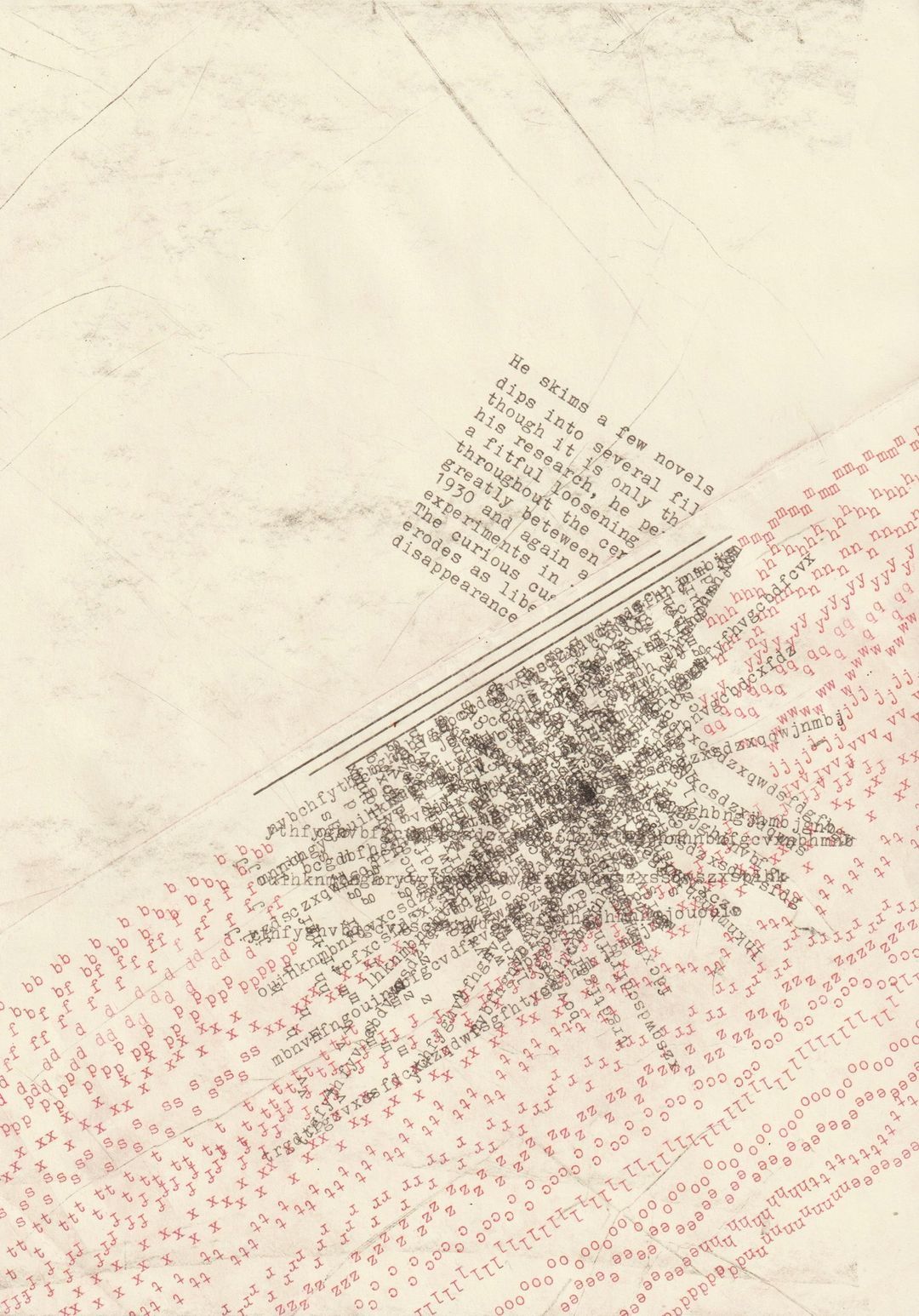 Once I got over the Fine Artist’s craving to be exhibited in a conventional gallery, books became the logical medium for my art; they’re affordable, and with online printing, relatively easy to produce. Dieter Roth, Eduardo Paolozzi, and Robert Rauschenberg have all inspired me, along with the Dadaists and Pop Art movements. Music—Jazz in particular—has inspired me for decades, the latter because it involves improvisation, and I improvise all the time when typing. So in that sense I’d also have to name players like Charlie Parker and Miles Davis, along with the maverick genius, Sun Ra. He once said, “Why don’t you do something right and make a mistake?,” which, in essence, is a concept I hold dear. No one can force mistakes, but imperfections arising from “mistakes” are appealing to me. No visual poet has shaped my style, but the collective evidence of works made since the ‘60s inspires me and suggests a few ideas. If I had to name one visual poet though it would be Bob Cobbing. I can’t claim to be truly “original,” but as I work there are no ghosts of poets past sitting on my shoulder. In that respect, I’m mercifully free of the burden of influence.