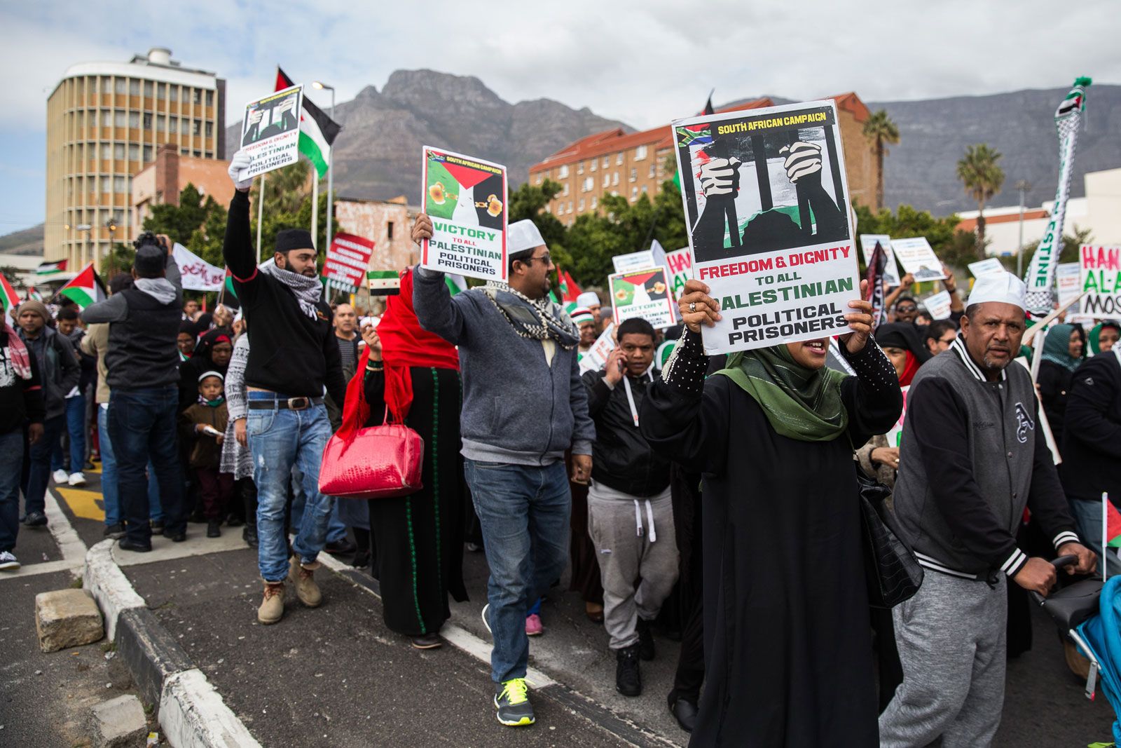 Hundreds march in Cape Town on 26 August 2017 calling for Palestinian prisoners to be released from Israeli captivity.