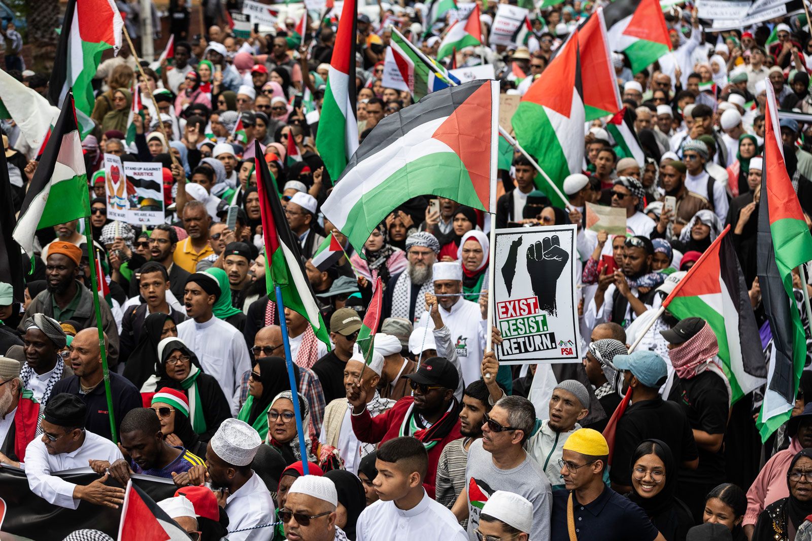 Tens of thousands march through Cape Town in solidarity with Palestinians on 11 November 2023.