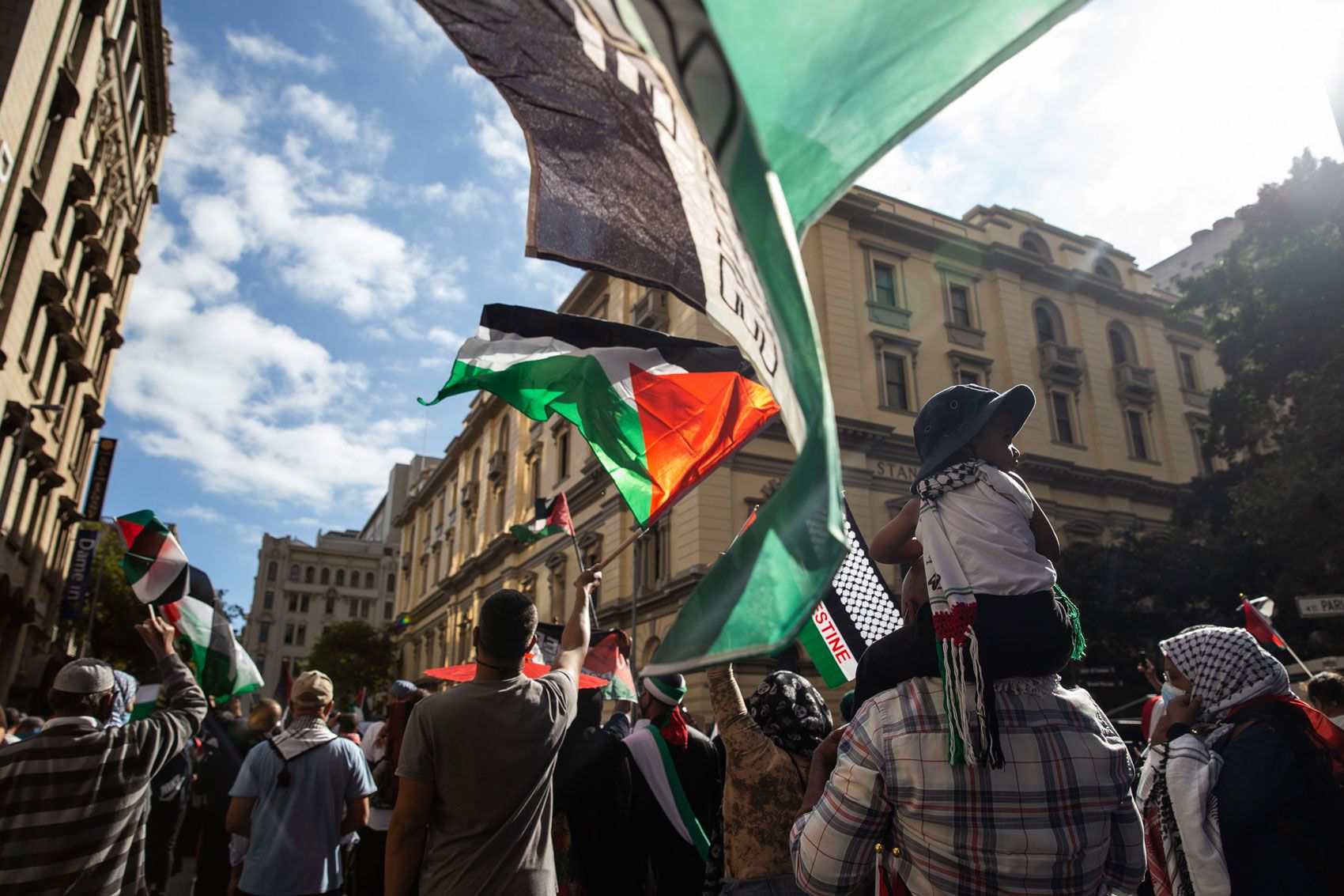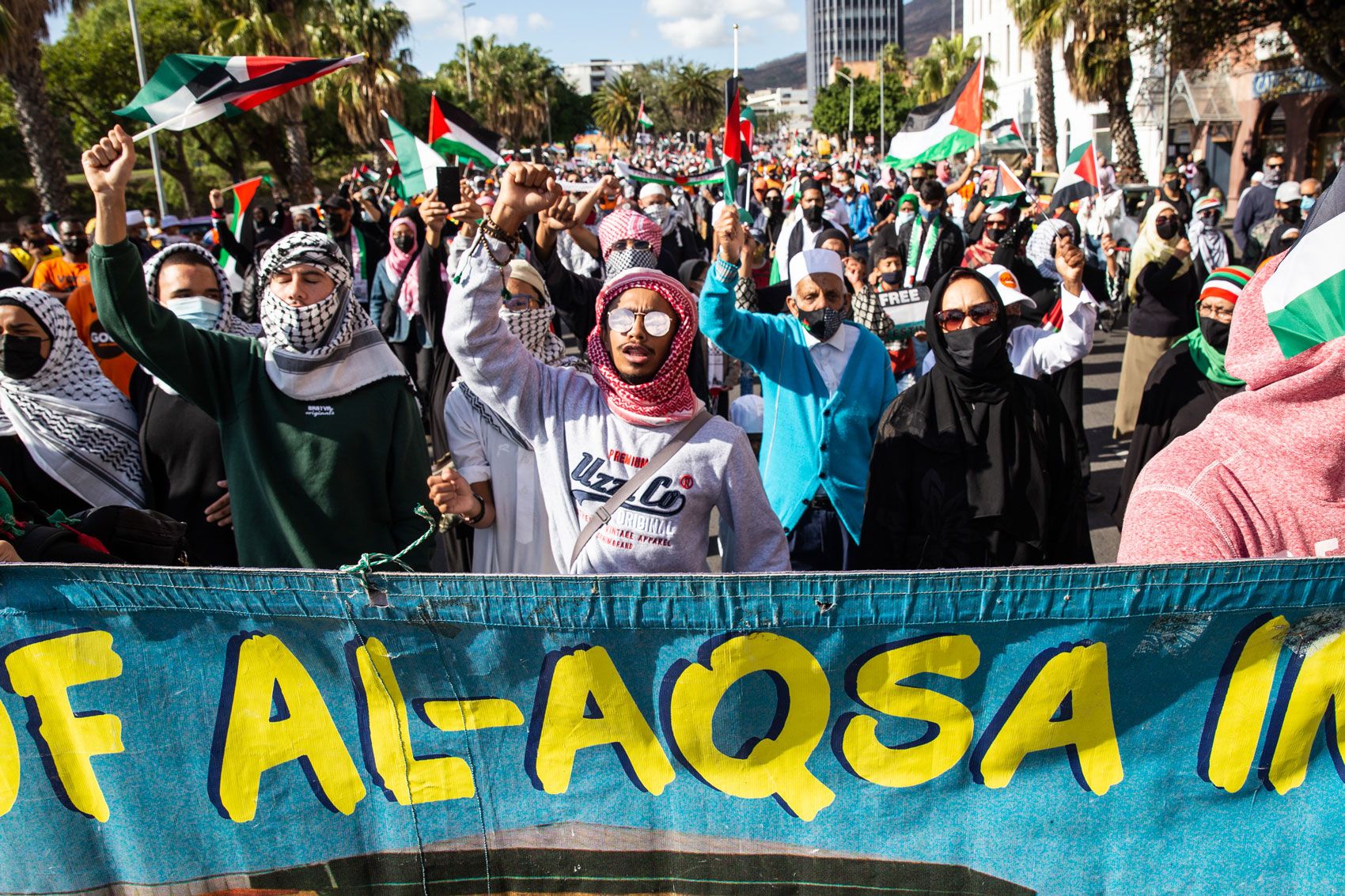 Hundreds of Palestinian supporters march to Parliament in Cape Town on 12 May 2021. The march comes after Israel’s air strikes on the Gaza Strip.