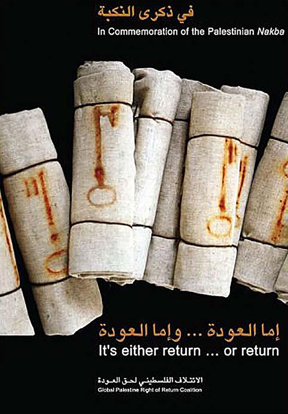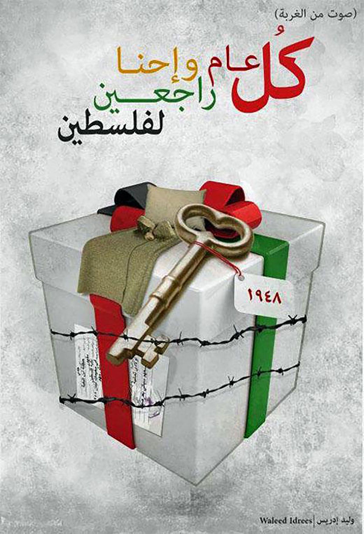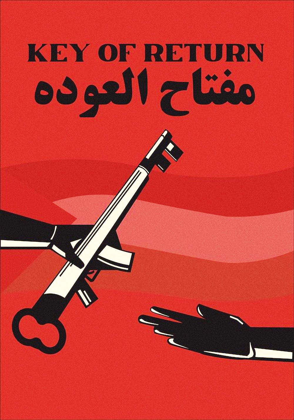 A huge black key lies above a keyhole shaped gateway to the camp, the key being the great symbol of Return, the key to the house and home from which we were forced by the occupiers who now live in our home—our country—as if it were theirs.