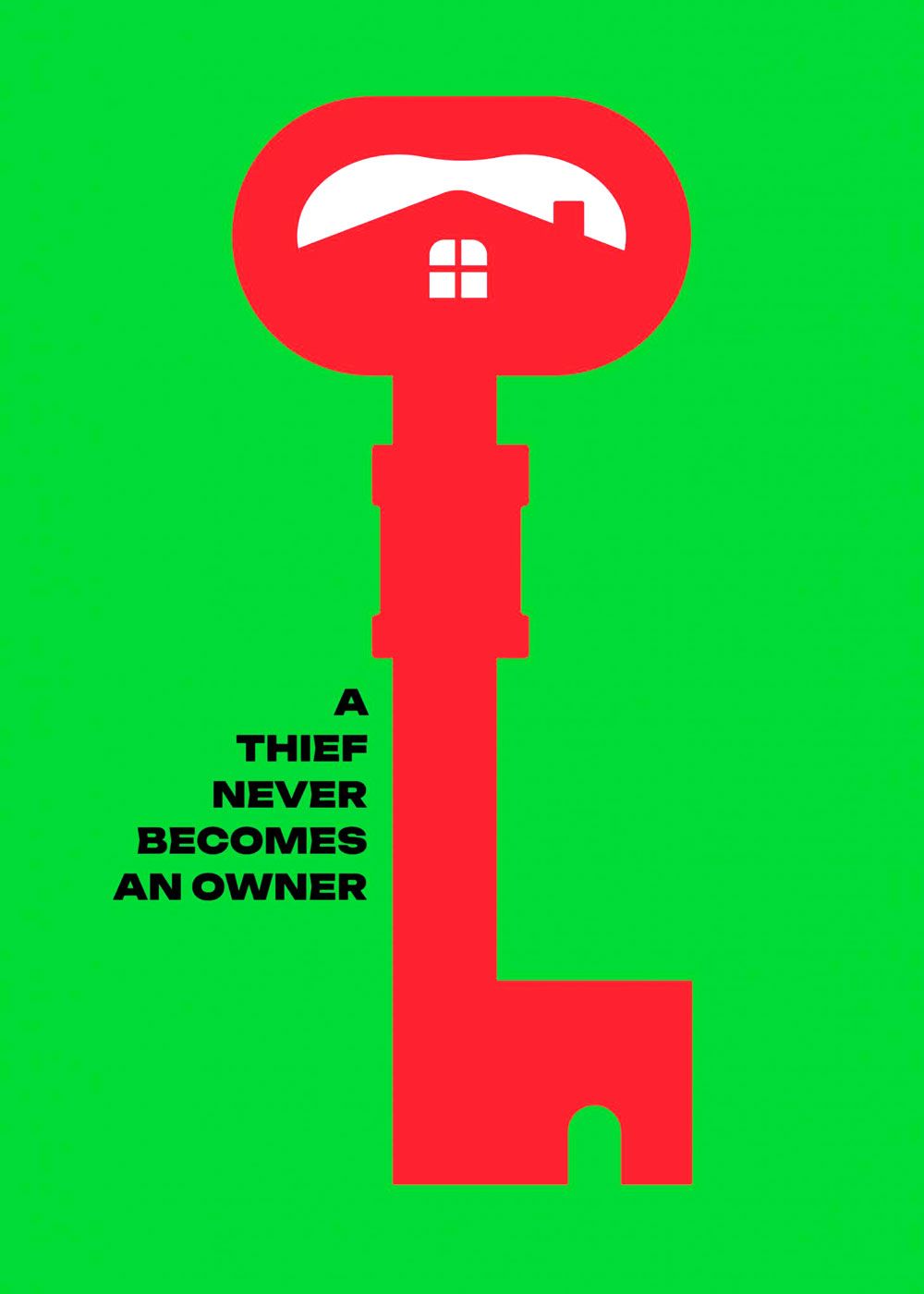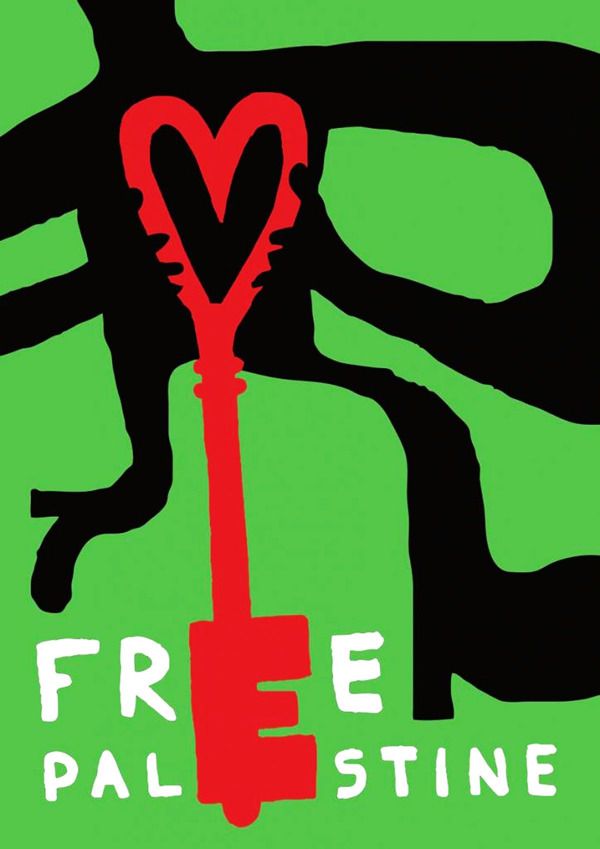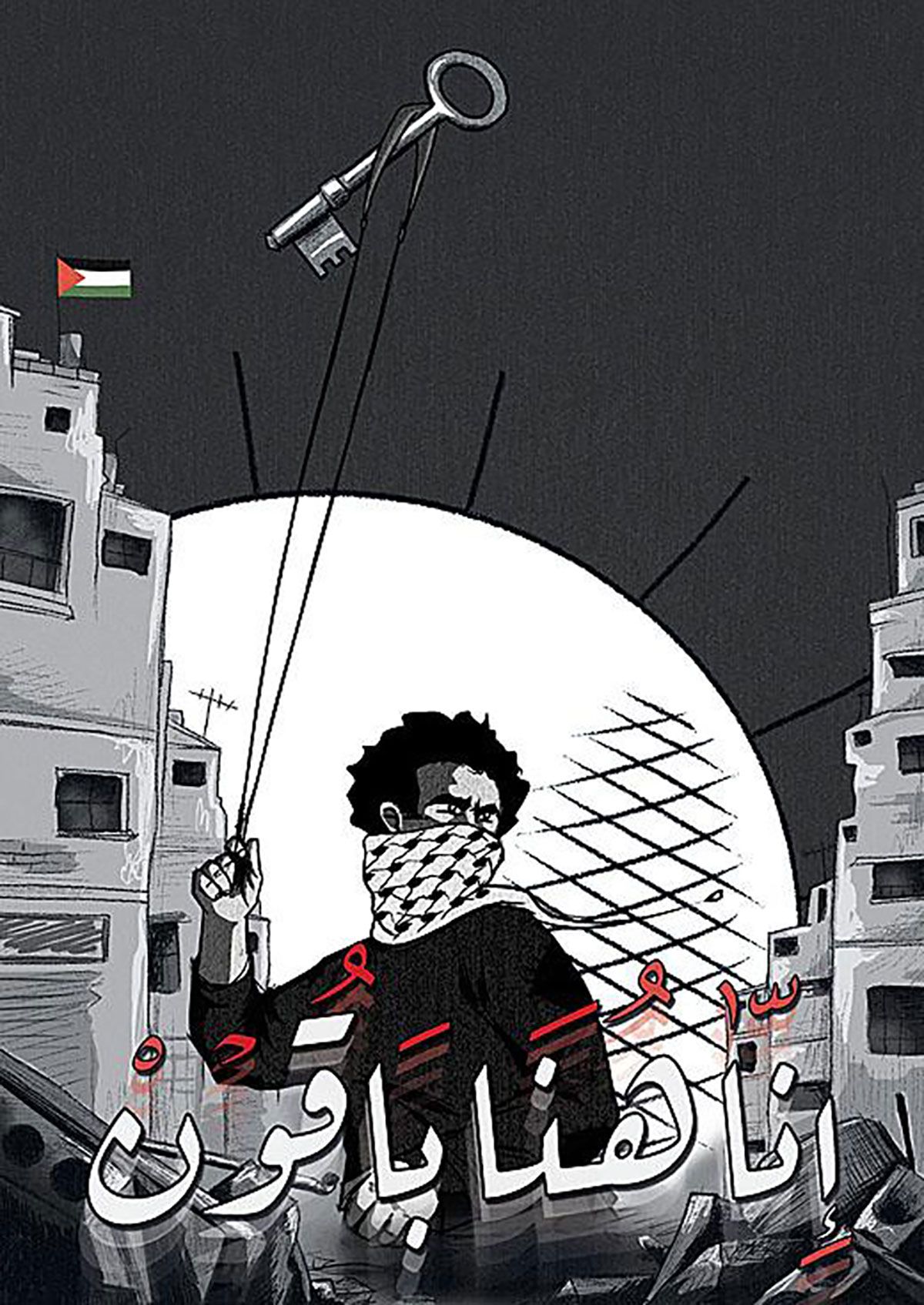 A huge black key lies above a keyhole shaped gateway to the camp, the key being the great symbol of Return, the key to the house and home from which we were forced by the occupiers who now live in our home—our country—as if it were theirs.