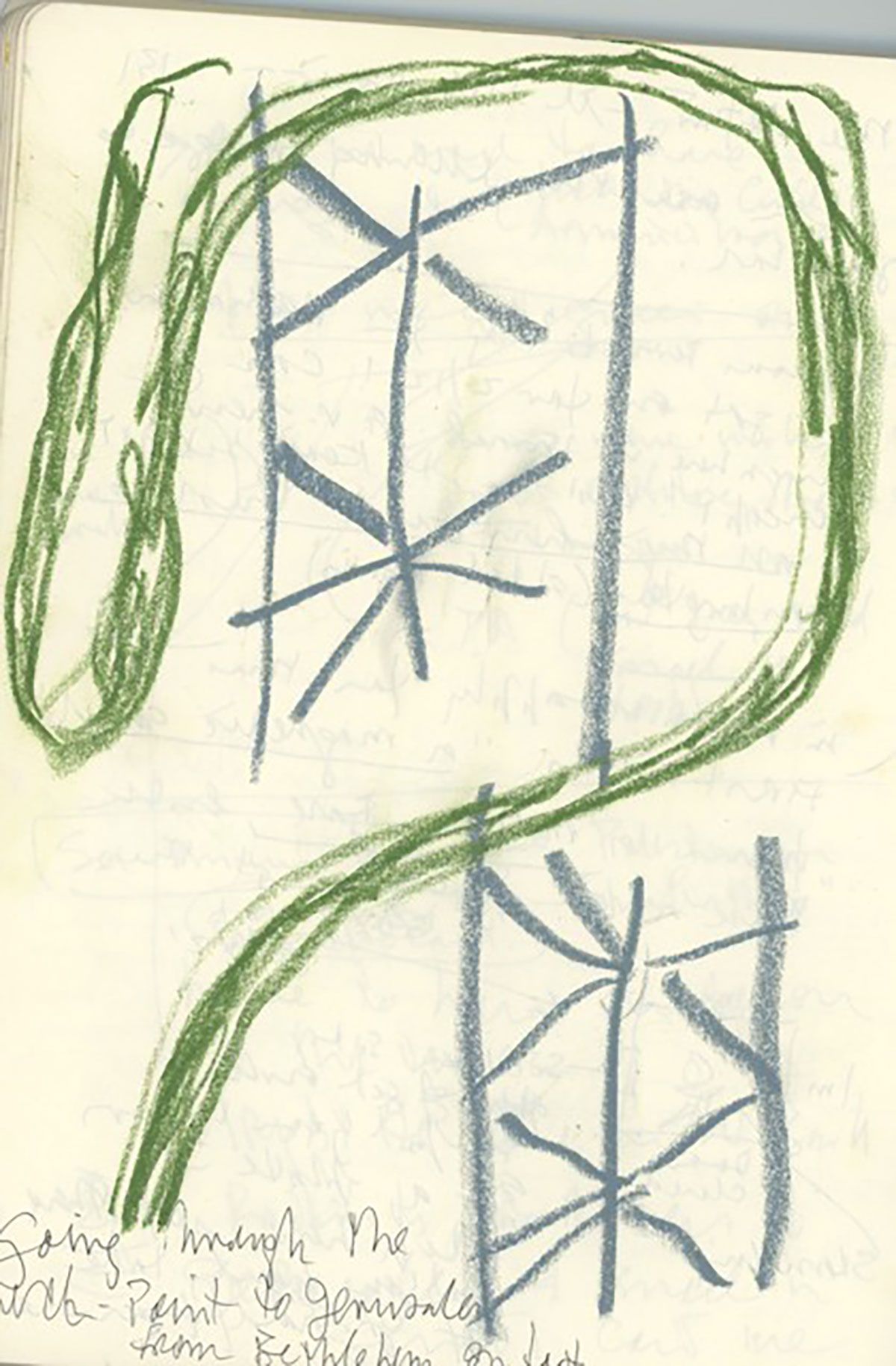 Next to the palm tree in the patio there was an old olive tree showering us in the delicate shade of its silver greenery. Can a symbol be so exquisitely symbolic that is more than a symbol? Along the road into Bethlehem from Ramallah I saw rows of black stumps about thirty centimeters high, the wounded remains of Palestinian olive groves cut down by the Israeli state so as to prevent attacks on the road. At least that was what I was told. But then what cover does an olive grove provide since the trees are generally barely two meters up from the ground and offer no hiding place?