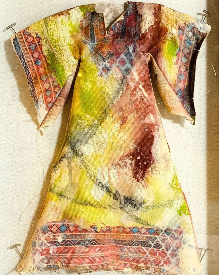 Woven throughout are traditional tatreez motifs, reimagined in thread and image transfers. Hussaini’s work becomes a layered conversation between past and present—a testament to endurance, identity, and the quiet strength of memory passed down, stitch by stitch.