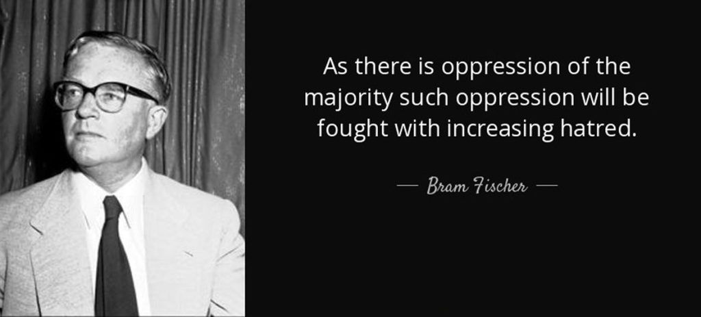 Bram Fischer, Mandela, and their comrades had fashioned a liberation movement that was not about black versus white but about the transformation of an iniquitous system so that all could live freely in the same country.