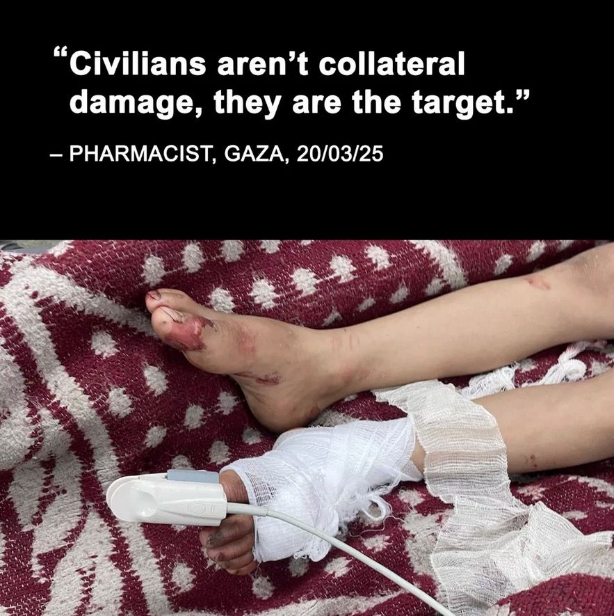 Journalists who document this are killed in record numbers: over 240 assassinated – a deliberate targeting of those who tell the stories and collate the evidence. Independent international media remain barred from Gaza on the pretext of safety concerns, but it is so that Israel can continue to annihilate media workers, claiming they are terrorists.