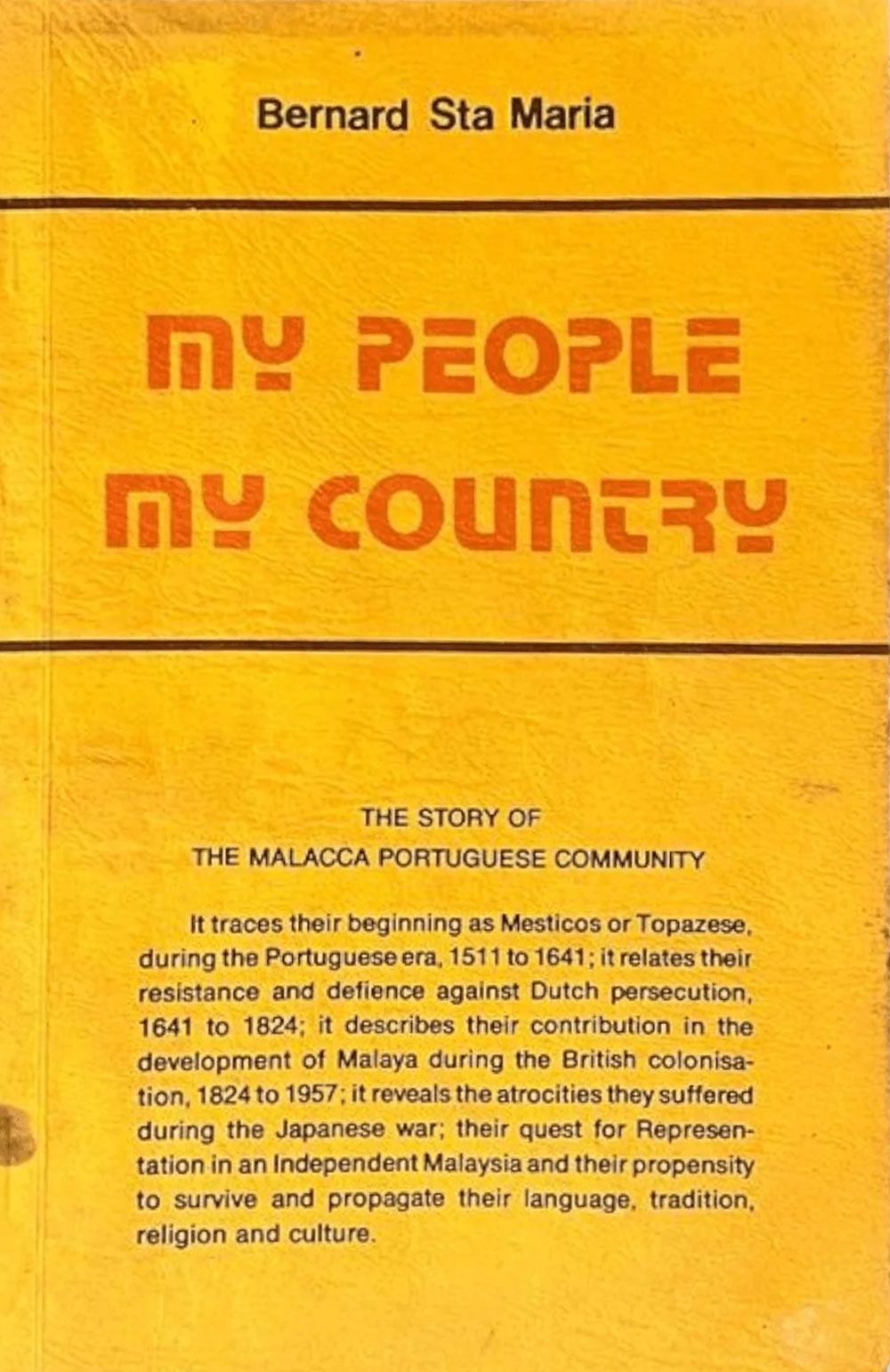 “There-lah…” she said, pointing to a shelf in the kitchen, where I spotted My People, My Country by Bernard Santa Maria, himself a descendant of the very miscegenation he describes. It is one of a handful of books recounting Malacca’s colonial history, and a valuable find.