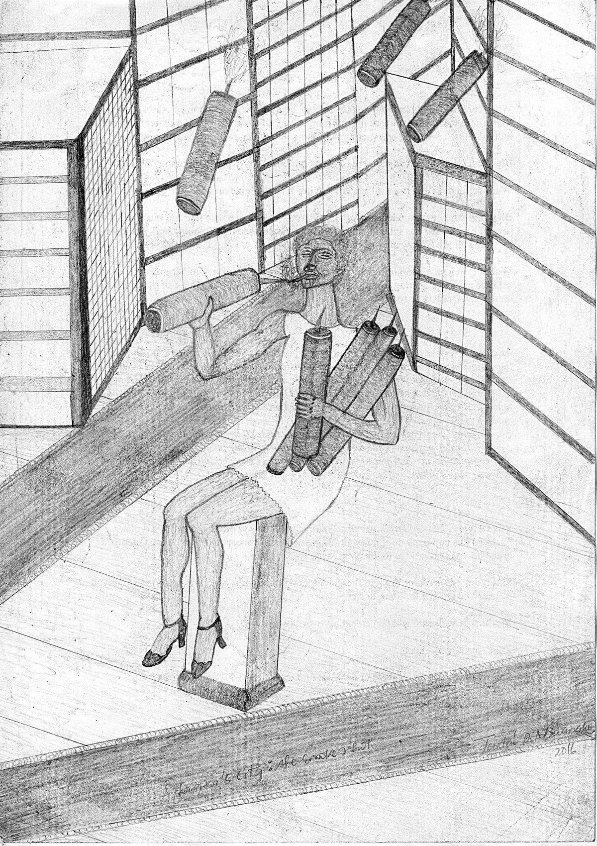 My work takes the nature of interactive, collaborative and multidisciplinary. I work across several art fields, including among others literary (fictions, novels, essays poetry, play, short stories, songs…), musical (composition, singing, reciting, mbira, marimba, keyboards, a little guitar…), and visual (drawings, paintings, photography, collages, mixed media, installation etc…) I am interested in connection, convergence, community and cooperation, following disparate sometimes disfigured experiences, seeing how they can come together or shy away from each other to create new wholes.