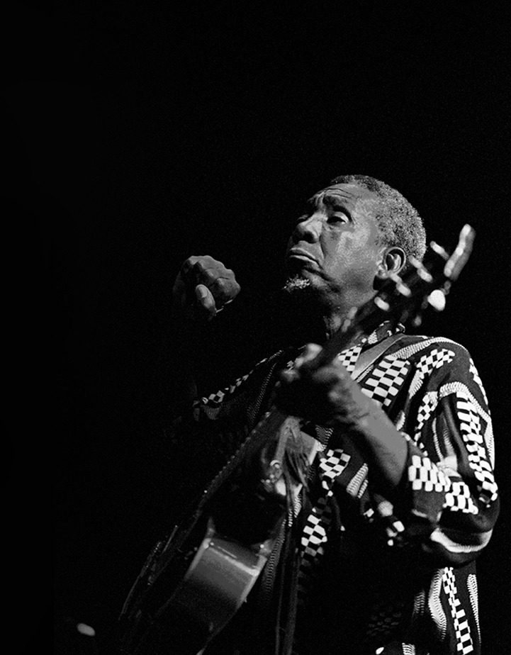This iconic black and white photo of Dr Phillip Tabane was taken by Hugh Mdlalose at the Market Theatre in 2004. (35mm Fujicolor Superia Xtra 400 ASA pushed to 800, Nikon FE 2, 105 mm, F 2.5, 250 shutter speed).