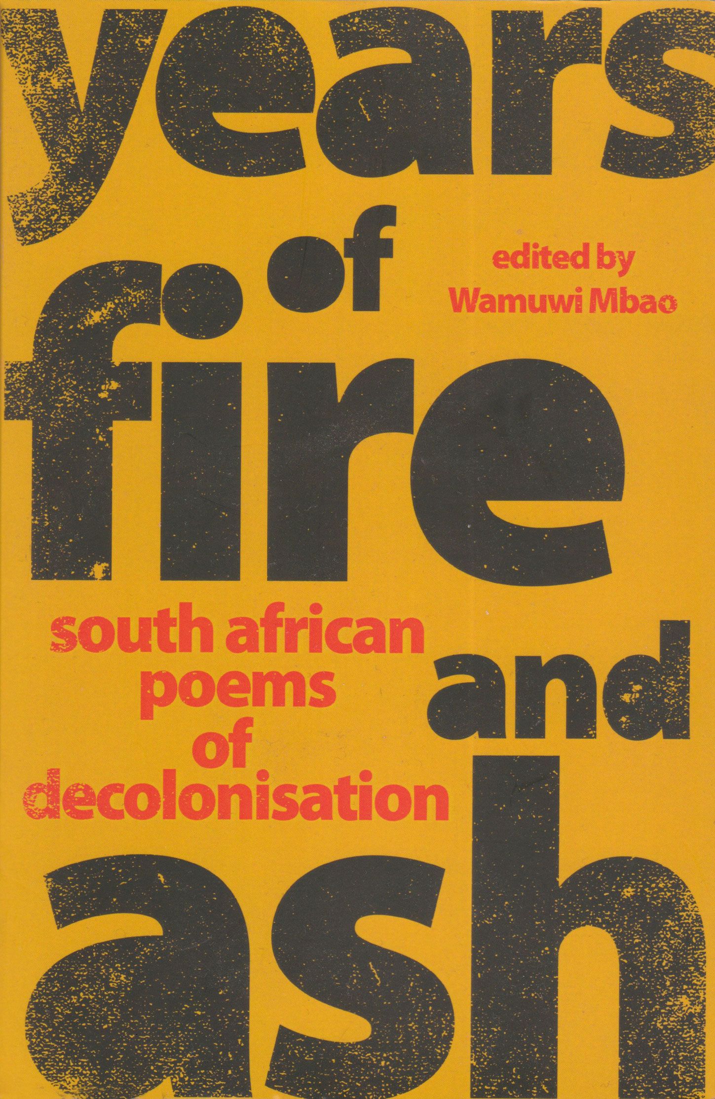 Mbao provides a complex set of reasons for putting this collection together (and shaping it in the way he has), all of which invite closer reading by those following the trajectory of transformative arts practices in South Africa at different times. Suffice to say that, in this text, he leans toward the current generation of poets, arguing that their work is “corrective” and brings about diversity. While older work was generally men-centred and “assumed a collective position from which to speak”, the current set of poets and their work reflects greater diversity. While the old poems leaned towards the “direct moral appeal”, the ‘now’ poetry – poetry of the post-apartheid period – “addresses itself to different anxieties of living”, These assertions will no doubt by debated by practitioners and analysts concerned with this field. Nonetheless, Years of Fire and Ash (including Mbao’s substantial introduction) affirms – in compelling ways – the important and multi-phased role and the impact of poetry in the struggle against colonial, post-colonial, imperialist and racist subjugation in South Africa.
