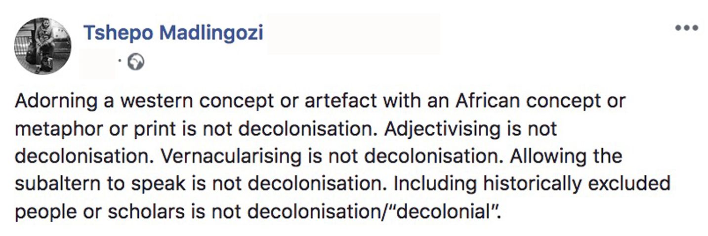 So what we would like these people to do is to help audiences discover what decolonization sounds like. How can we counter the impoverishment and devolution of the field that has resulted from the consistent absences of the same ethnic, racial, and gendered voices from stages, media, music histories, and professional networks? How could music curators start composing and improvising decolonization? What would a decolonized curatorial regime sound like?