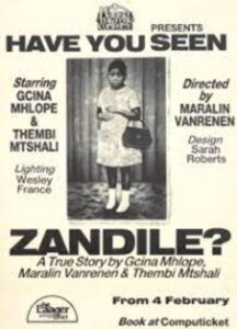 Mhlophe’s public debut took the form of a play, Have You Seen Zandile?, which was co-authored by Maralyn van Reenen and Thembi Mtshali, and performed at the Market Theatre in Johannesburg in 1986. Written in English and isiXhosa, the play draws heavily on matrilineal oral traditions with its focus on the importance of story telling not only in creating intergenerational relationships, but also in constructing the self. Have You Seen Zandile? tells the story of a young girl’s relationship with a beloved paternal grandmother, and her kidnapping at the age of eight by her own mother. It draws on the life experience of Mhlophe, who herself was forcibly taken and separated from a beloved aunt during her childhood years. Both Dorothy Driver (1996) and Devarakshanam Govinden (2006) argue that, in focusing on the personal, everyday experiences of a child, Mhlophe’s play maps out a psychic space for creative imagining and dreaming, a realm altogether different from that of protest literature and its demands in the 1980s. Have You Seen Zandile? was, consequently, panned by critics who found it too ‘apolitical’ (Govinden 2006). Mhlophe weathers such criticism by countering: ‘If I can write about the masses, I can write about me. I’m one of the masses’ (Perkins 1998, 81), thereby insisting upon opening up the space to chart the subjectivity of black women outside of the political discourses of Black Consciousness and black nationalism.