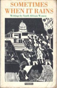 ‘The Toilet’ was anthologised in Sometimes When it Rains: Writings by South African Women (1987), and published in London by Pandora. This volume was one of two published during the 1980s that highlighted the poetry and short fiction of black South African women. Even though Sometimes When it Rains contains work by white women writers such as Nadine Gordimer and Elsa Joubert, the volume showcases a number of creative works  by – at the time – relatively unknown black writers such as Maud Motanyane, Gladys Thomas, Lizeka Mda and Fatima Meer. Also included in this collection is Miriam Tlali, who contributed a short story and an interview with Albertina Sisulu.