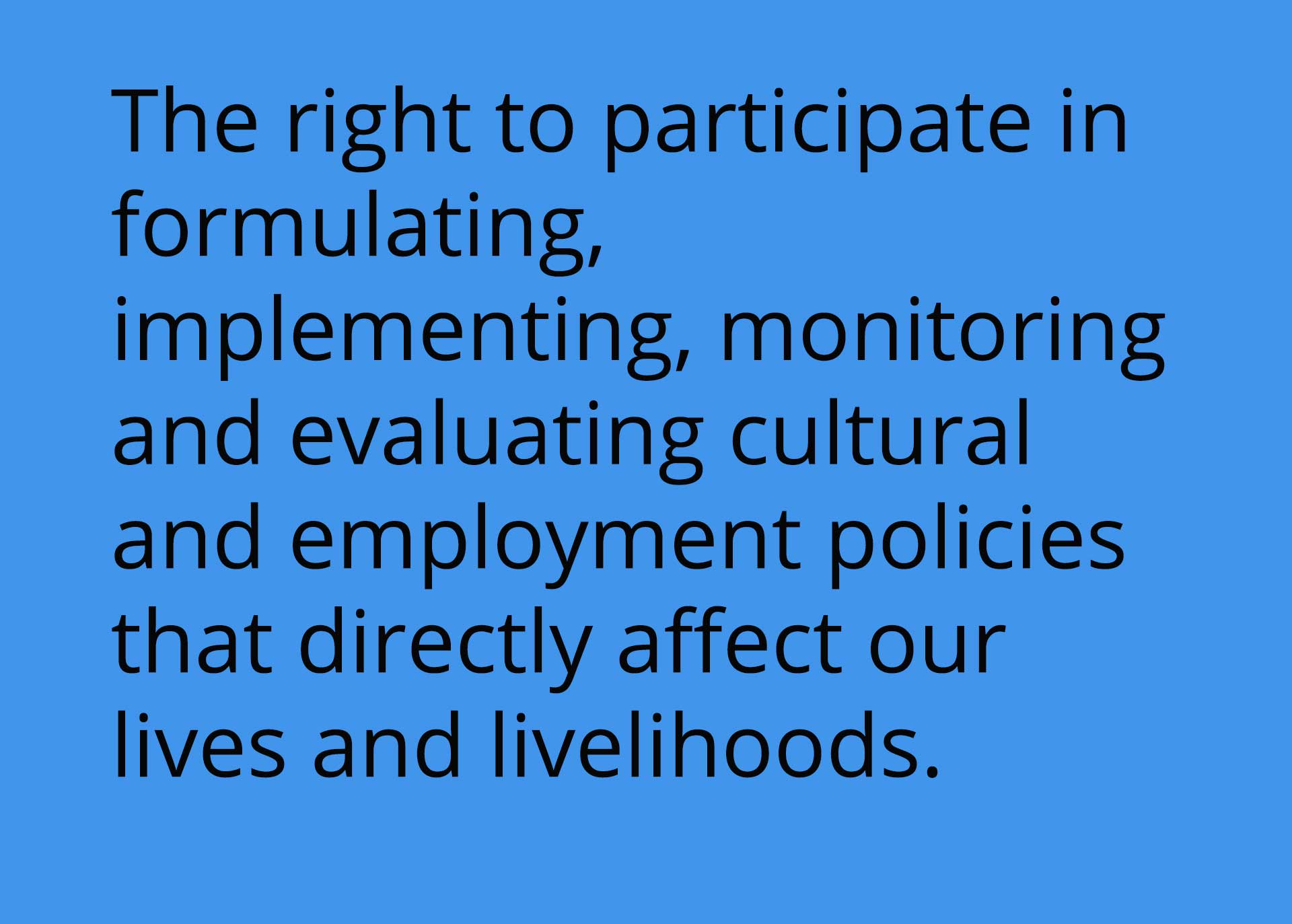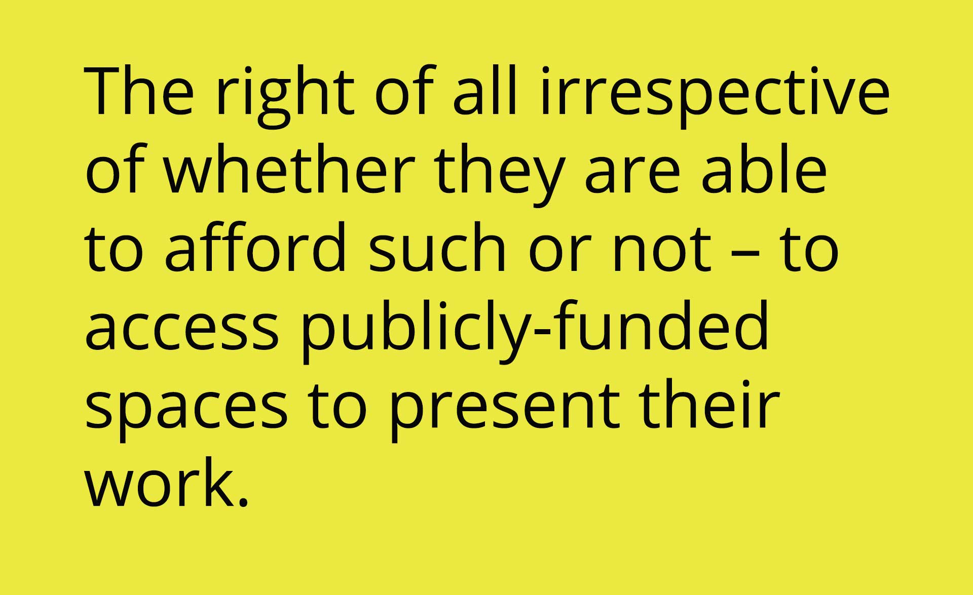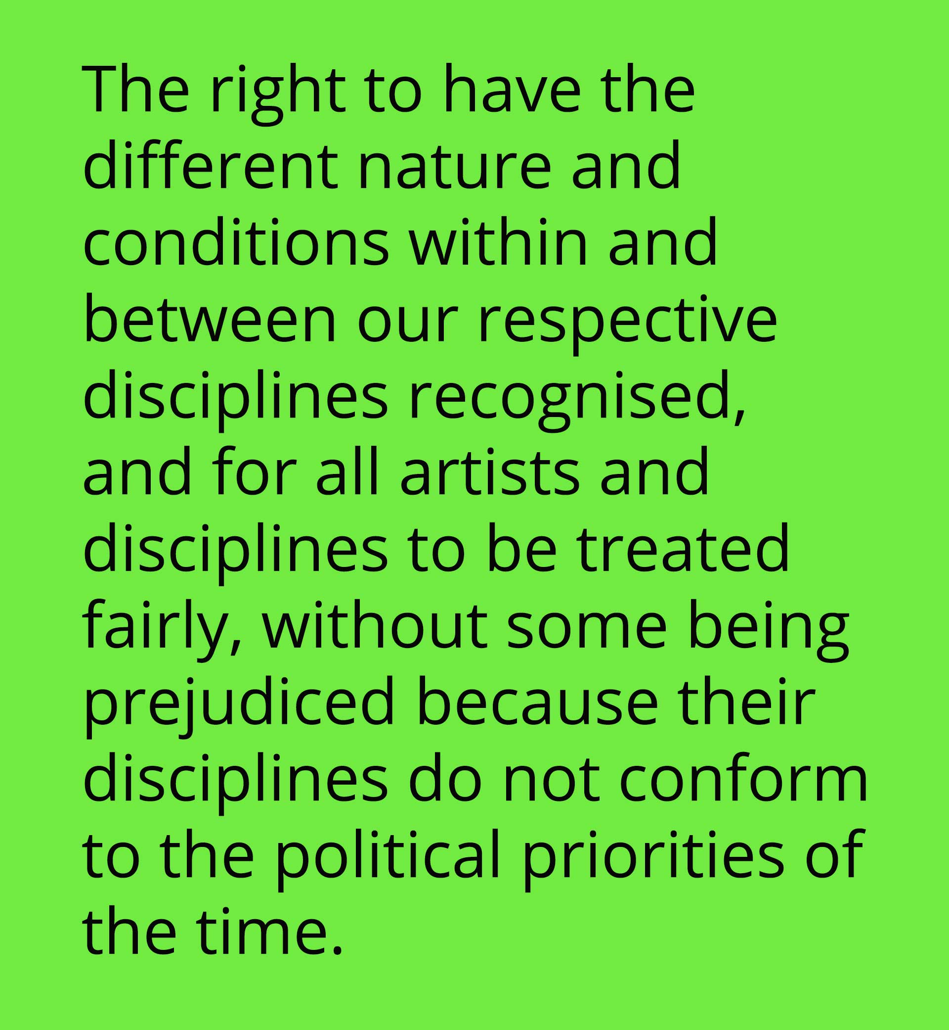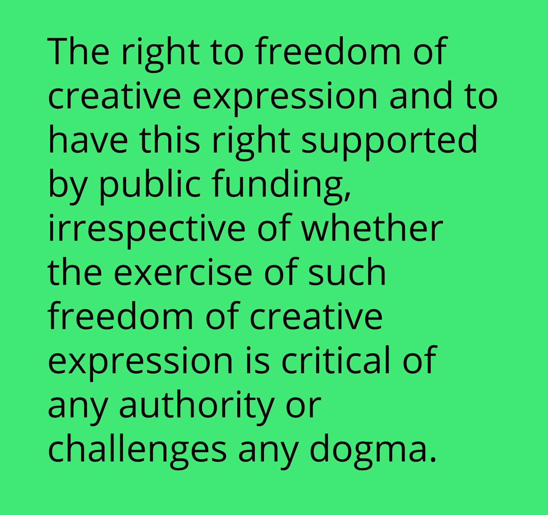 And so it is for artists. We need concerted citizen action to uphold these rights in the studio, theatre, gallery, cultural centre, classroom, and public spaces, but equally we need supportive legislation to ensure that those who violate or disrespect these rights are held to account. The arts are a barometer of the well-being of the nation, and without a healthy arts and culture sector, there can be no healthy individual or society.