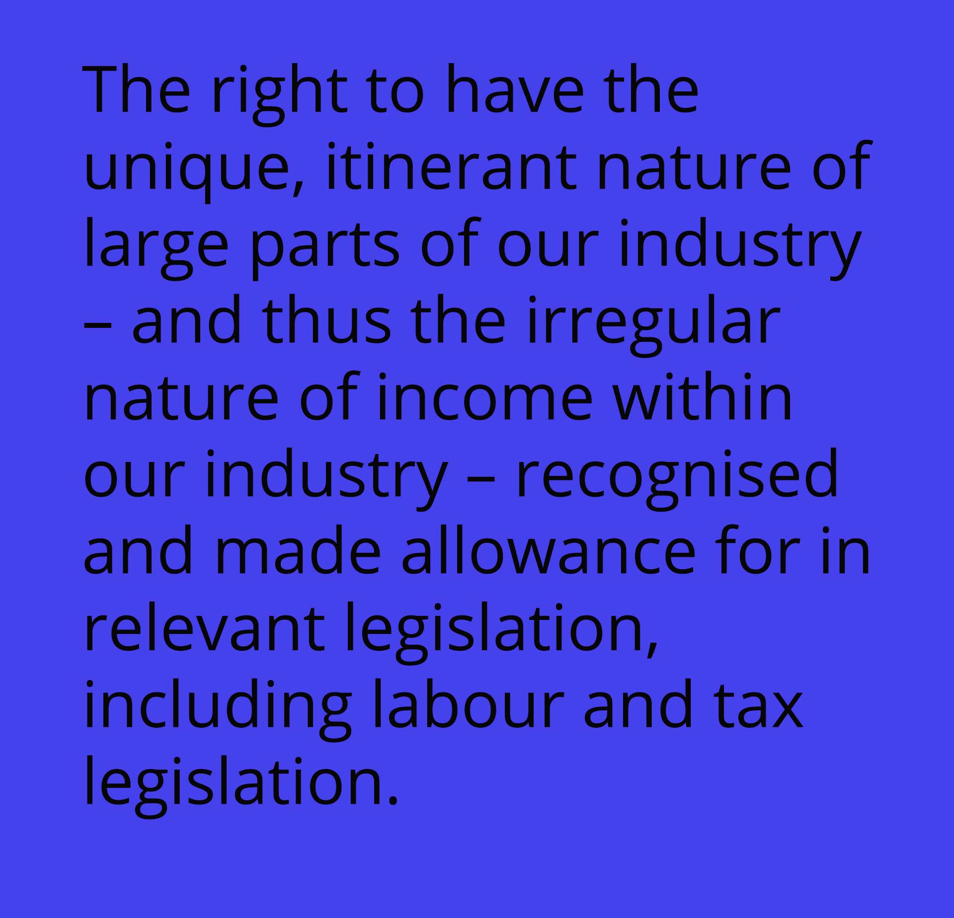 For example, the economic health of the sector as a whole links directly and indirectly through to the occupational health and wellbeing of the artist as an individual, which links to their optimal artistry, creativity and creative output.