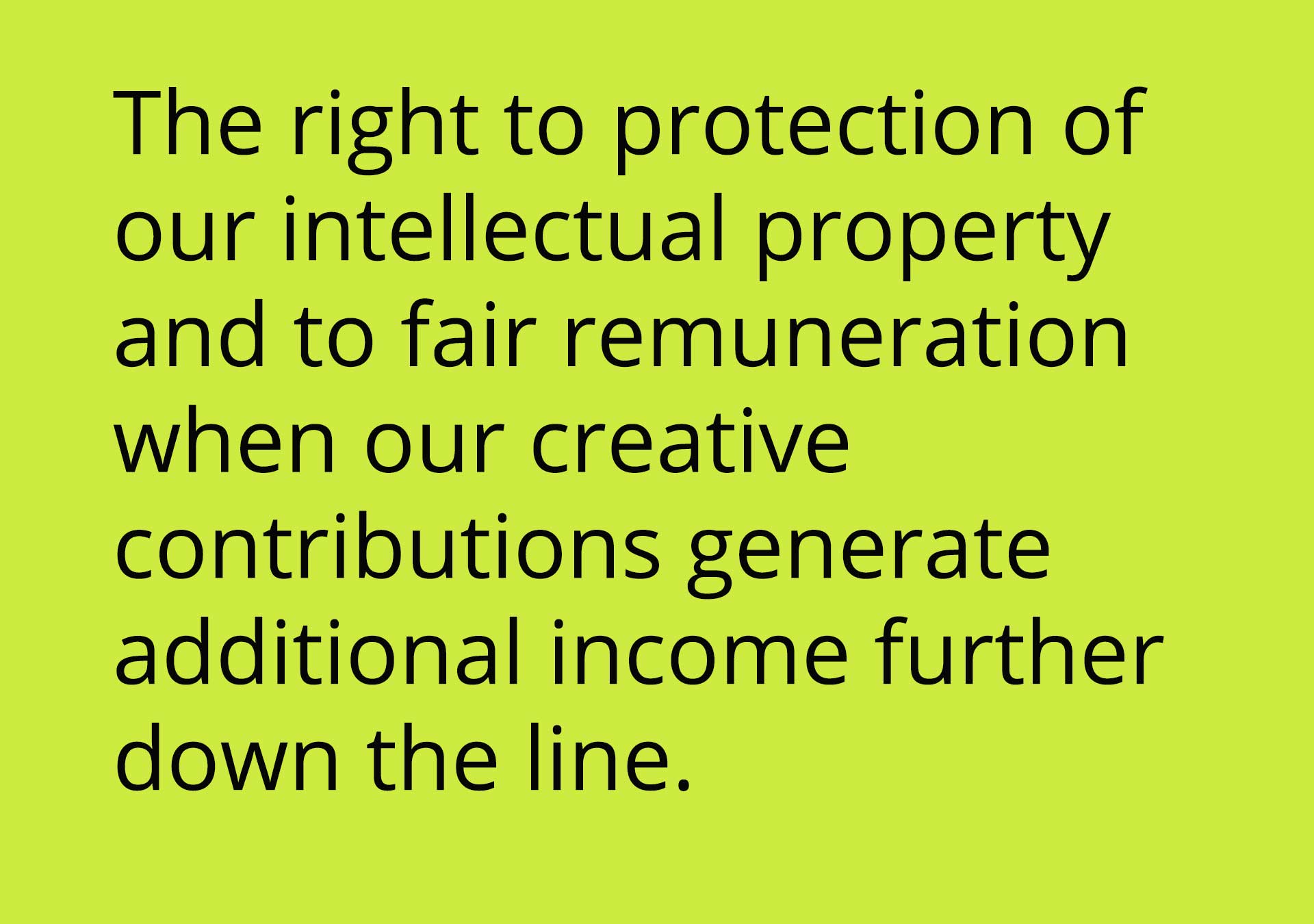 The Charter for the Rights of South African Artists provides us a framework from which we can start to combat the factors that contribute towards the ill-health of our current ecosystem. The publicization of, advocacy for, and education on the Charter should be aimed both within and outside of the creative industries and includes critical engagement with everyone, from the individual artists all the way up to government and policy organisations.