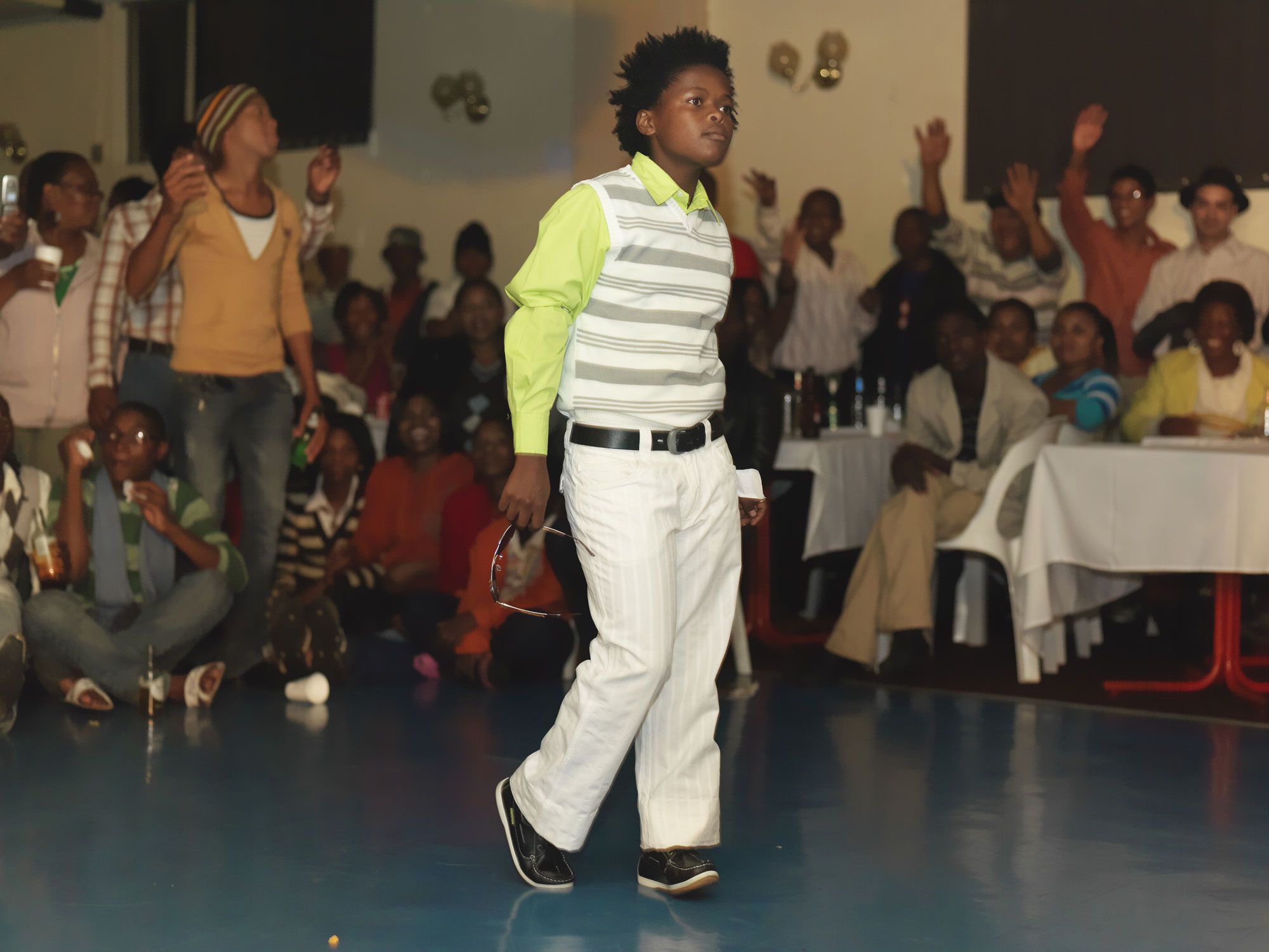 The MC introduces Chedino to a captive Bonteheuwel audience as the ‘future mayor’ of Cape Town. ‘Once I had this question at a competition,’ says Chedino, ‘they asked me: “Who is your favourite gay person, and why?” I don’t have a favourite gay person … my favourite gay person is all of those gays who had the courage to come out of the closet and be true to themselves in being whom and what they are. Because, depriving yourself of that, what’s it doing to you at the end of the day? Most gays commit suicide. Why? Because they cannot be who they want to be, thanks to society. There is nothing I want to change about myself. The reason is that in order for my community to accept me for the gay person that I am, I must first and foremost accept myself as I am.’