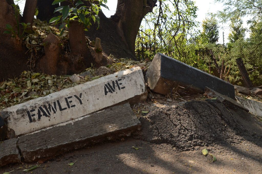 I do a lot of walking on verges and streets, and I have done for more than 20 years, being a dog walker and a part-time jogger. I walk at least once a day, usually twice, not just to give my cooped-up dogs some space and sanity, but myself as well, especially since I started working from home. Walking is my meditation, and I usually take the dogs up to the Melville Koppies, Westdene Dam or to the park at Emmarentia, where there is some grass and rocks and space and sky and even the odd bit of ‘nature’ as we like to call it. But to get to these spaces I have to walk or drive through the streets of the lower part of Melville – I’ve not included the shops of this suburb here, they are a whole universe unto themselves – and while on my walks, I began to notice some recurring verge themes.