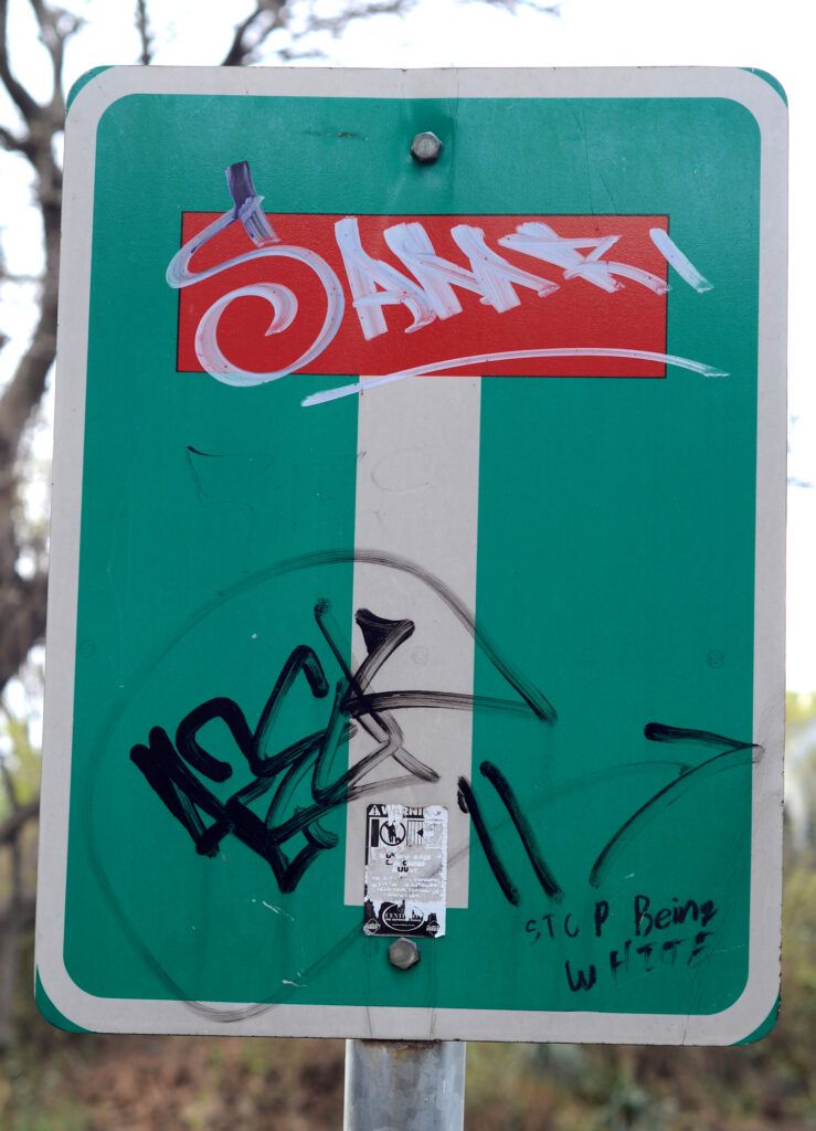 Homes that are for sale bear signs signifying their status, which changes fairly rapidly in Melville from ‘for sale’ to ‘reserved’ to ‘sold’. The homes may be permanent structures, but their residents come and go. All of these signs are fair game for graffiti artists to deface.