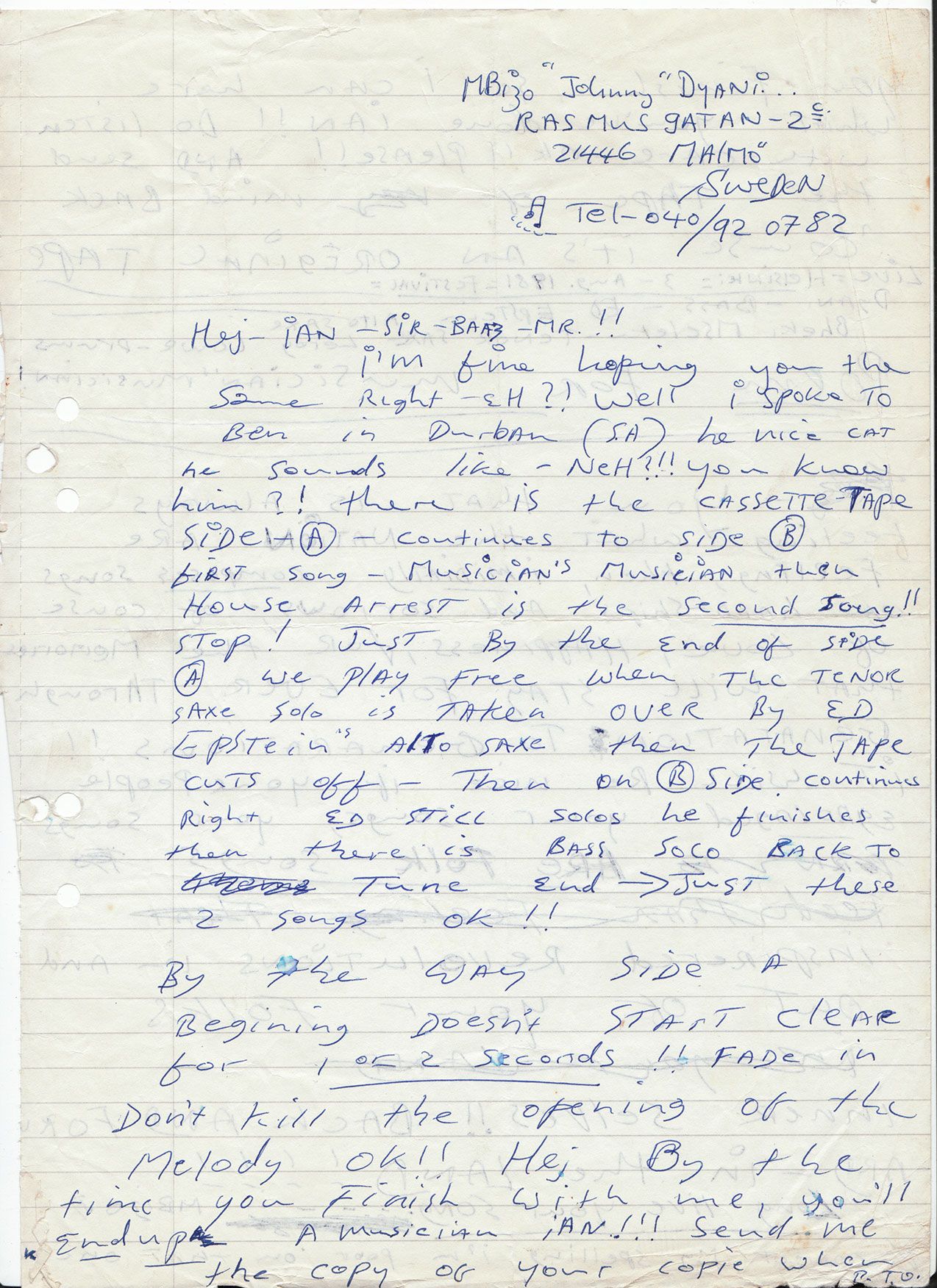 Johnny Dyani Interview 22-23 December 1985