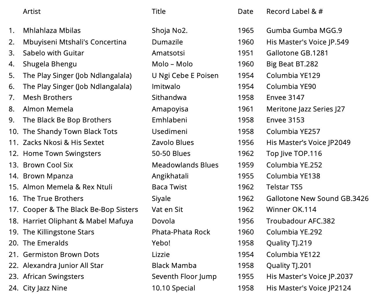 Sales of 78rpm record players and shellac discs in South Africa rocketed. The burgeoning music industry diversified and took chances, recording and pressing examples showcasing an amazingly broad range of genres – from traditional, through religious, choral, maskandi, swing, jazz, marabi, blues, jive, doo-wop, rock ’n roll, twist, and quite a few trends and gimmicks in-between.