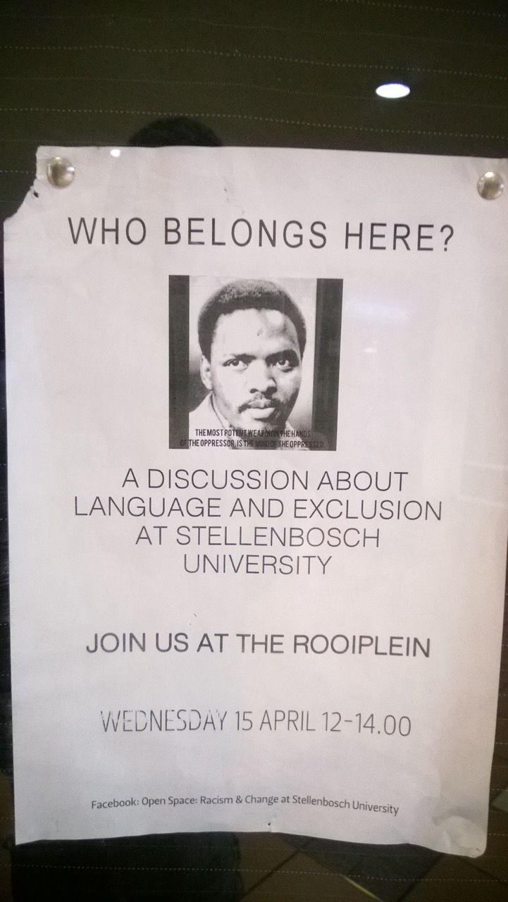 Stellenbosch University, 12 July 2015. (Photo and caption inserted by Editor)