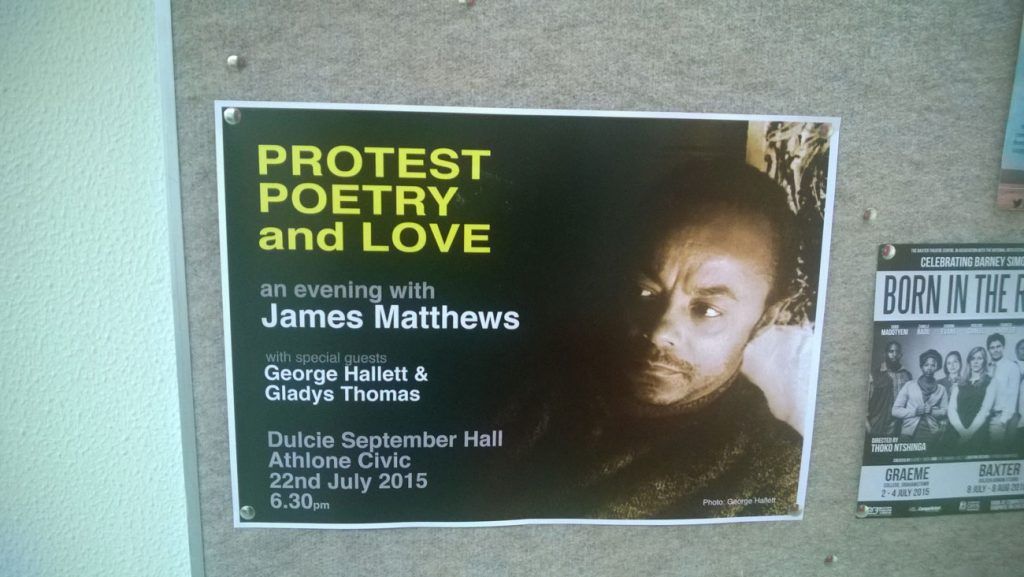 “James turned to poetry when writing political short stories became, in his words, ‘a daunting challenge’”, Willemse wrote. “This turn in his creative output coincided with a shift in our social and political environment. It became harsher than ever before,” he added.[3]James Matthews a revolutionary poet Thomas Penfold, referring to this switch in the early 70s, states: “Poetry, he felt, was a form more suitable for rapid and accessible declarations”.[4]Penfold, ‘Black Consciousness and the Politics of Writing the Nation’ in South Africa, University of Birmingham theses, p. 150.