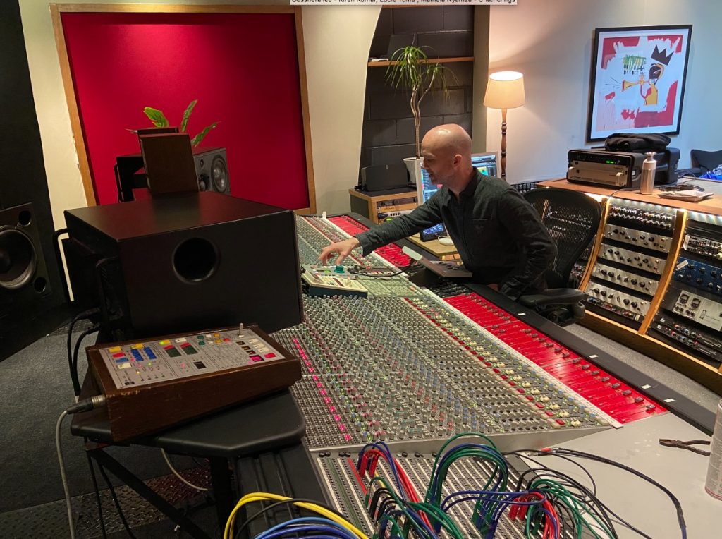 Jonathan Eato at the Red Room mixing Nduduzo Makhathini’s Modes of Communication. Photographer: Jonny Breakwell.