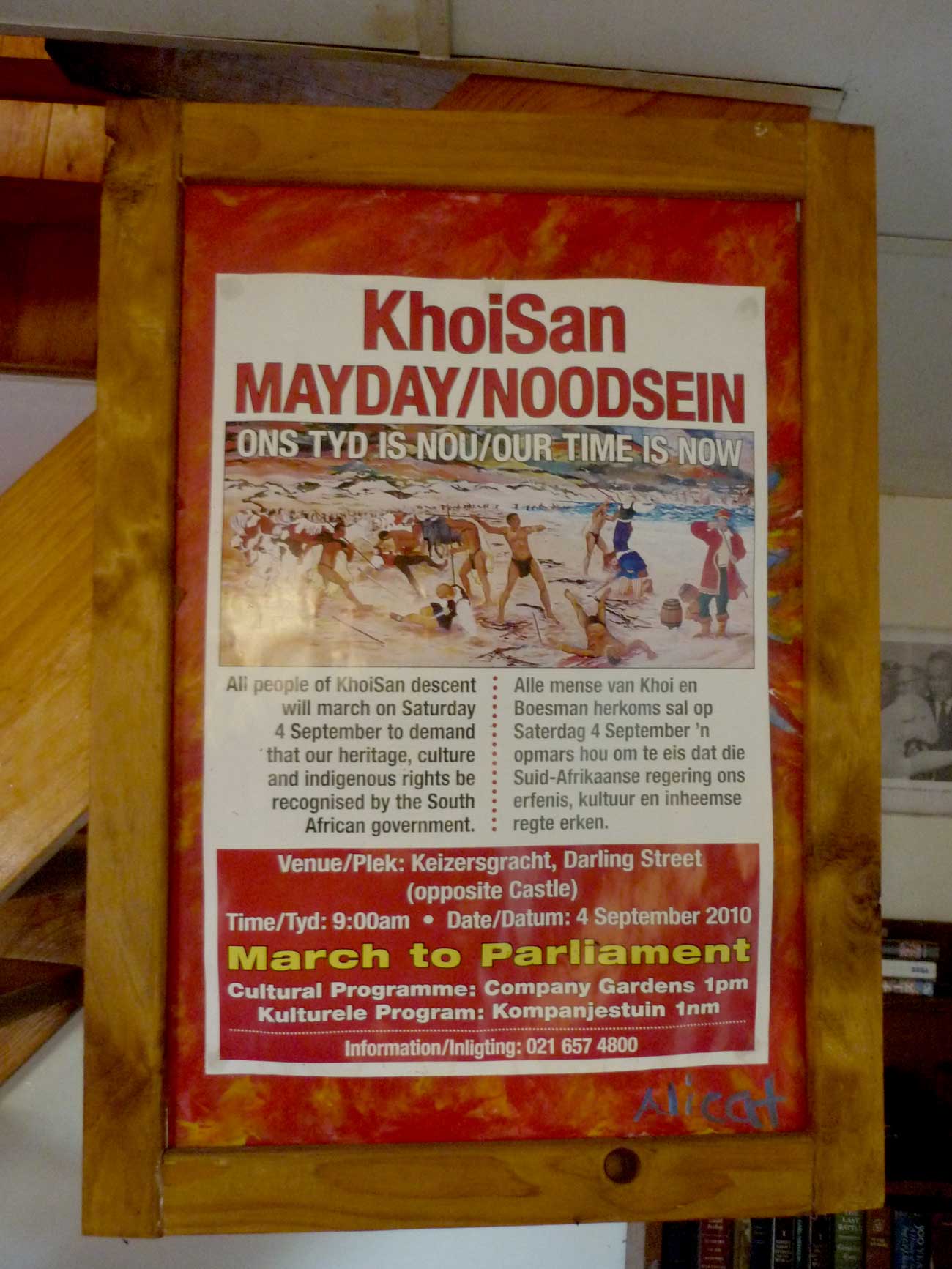 Europeans, regardless of their genocidal attacks on the San, were projected as the protector-stepparents of the exoticized “Bushmen” and Khoe servants seen as God’s “Volkies” who needed the guiding hand of the white super-race. As such whites and their “Khoisan” charges were projected as the ”First People” – and part of God’s plan for the “Chosen Race of God”. It was argued that God was an orderly God, and whites and their wards were the only true South Africans – die “Wit Afrikaner Volk” en hul “Bruine-Afrikaner Volkies”.