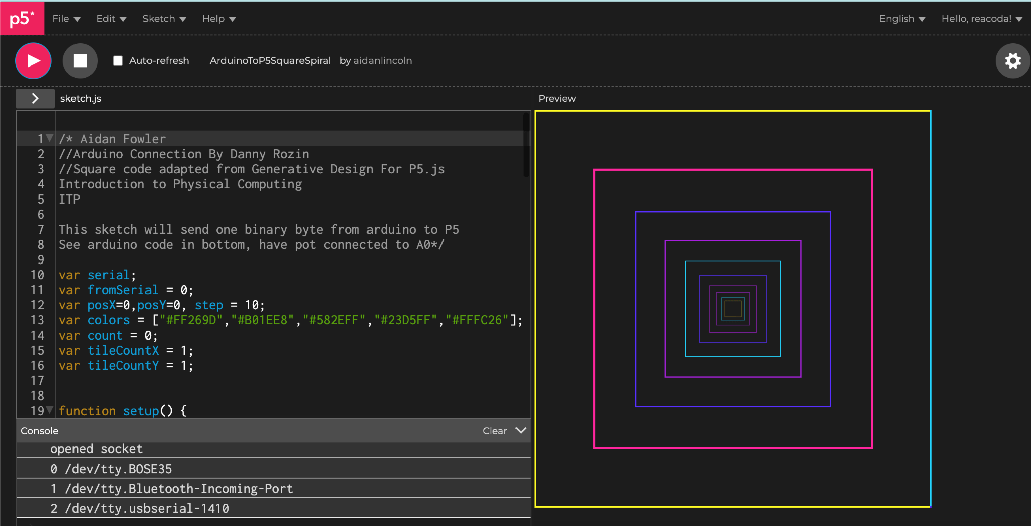 Once you have done with the arduino code, you need to open p5js editor p5js editor on your browser  and then write the following code: