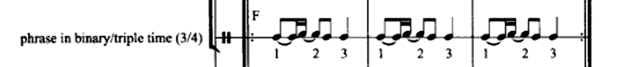but if the binary pulsation in beat one persists within beat two, the short-long figure is a three-in-the-space-of-two cross rhythm (see Figure 7B);