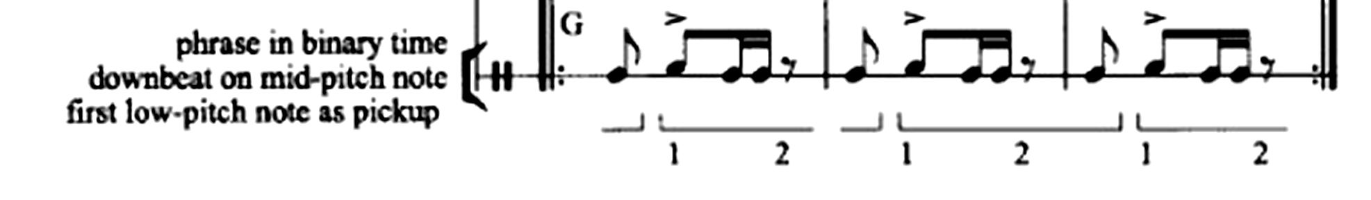 | 59. | ↑ | For a recent discussion of the two-note figure and the issue of ternary versus binary pulsation within beats see Burns (2004). Roderic Knight also has an excellent analysis of what Burns calls “binarization” of ternary time. |