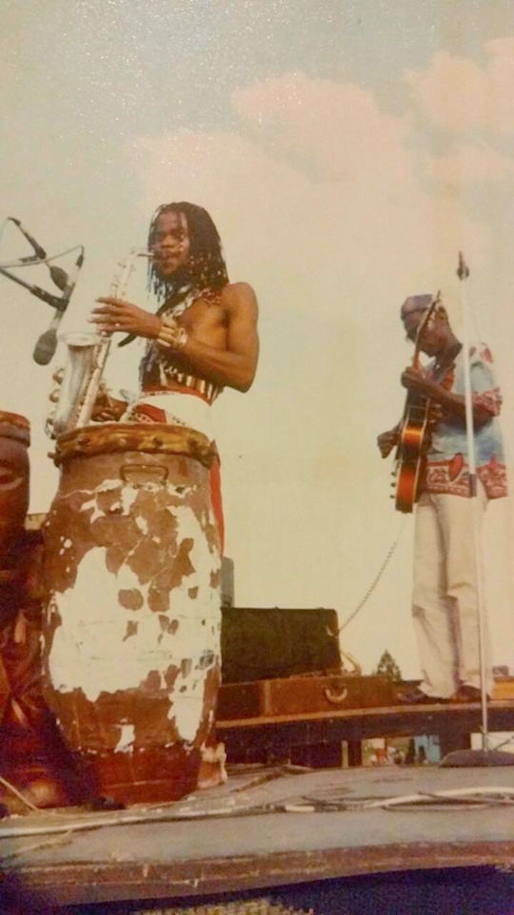 Across from the burgeoning Durban cultural milieu, the BCM alliances spread to other flourishing hot spots of rising consciousness around the country. The most prominent of these, alongside Soweto, were Mamelodi and Ga Rankuwa in Pretoria. With fellow musicians Gilbert ‘Gilly’ Mabale (flute and saxophone), Oupa Rantobeng Mokou (vibraphone) and Lawrence Moloisi (guitar), the young Lefifi Tladi (percussion and poetry), profoundly inspired by Philip Tabane, Abbey Cindi and Julian Bahula’s Malombo Jazzmen, formed Malombo Jazz Messengers, later changed to Dashiki. This group, moulded in a similar manner to Malopoets, but slightly earlier – in 1969, radically shifted the dynamic in terms of employing creative cultural expression as a means of raising the consciousness of the people.