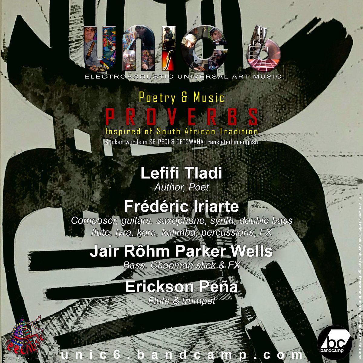 PROVERBS by Lefifi Tladi, Frédéric Iriarte, Erickson Peña and Jair-Rôhm Parker Wells. Inspired by South African traditional spoken words/proverbs in sePedi & seTswana translated into English.