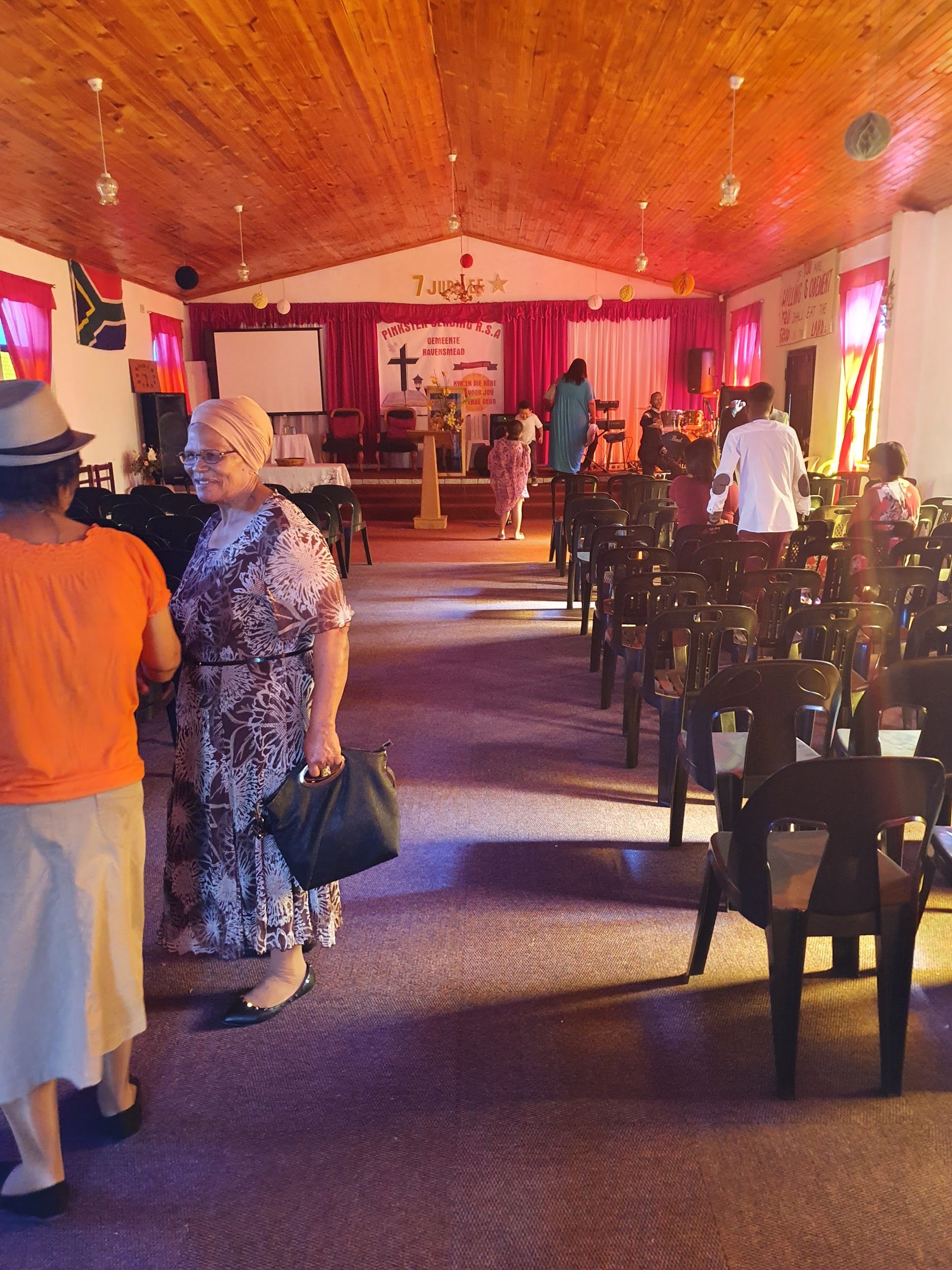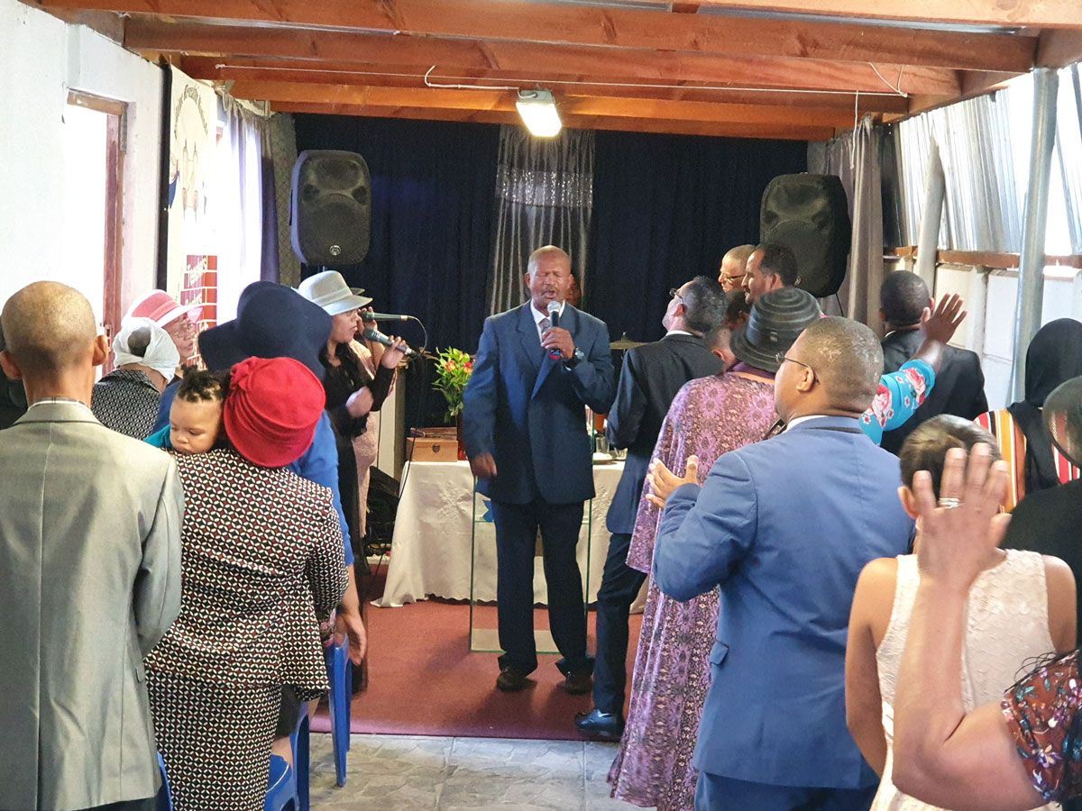 Mariana het gesê dis ’n êg Pinksterkerk, met ander woorde, in my kop is dit hoede en lang skirts en suits. Ek stuur vir Mariana ’n WhatsApp voice note om te vra of my beplande outfit OK sal wees. Sy antwoord kortaf met, Kom soes jy is. Mariana het my gewaarsku dat, alhoewel die eredienstyd 9:30 is, die kerk begin wanneer hy begin. Ek assure haar dat ek rustig is, dat ek slegs daar is om te observe en dat ek deur hulle gelei sal word. Ek bid vir veiligheid en leiding voor ek na die kerk toe ry en sit Simon Seekoei se CD in om in die regte gees te kom.