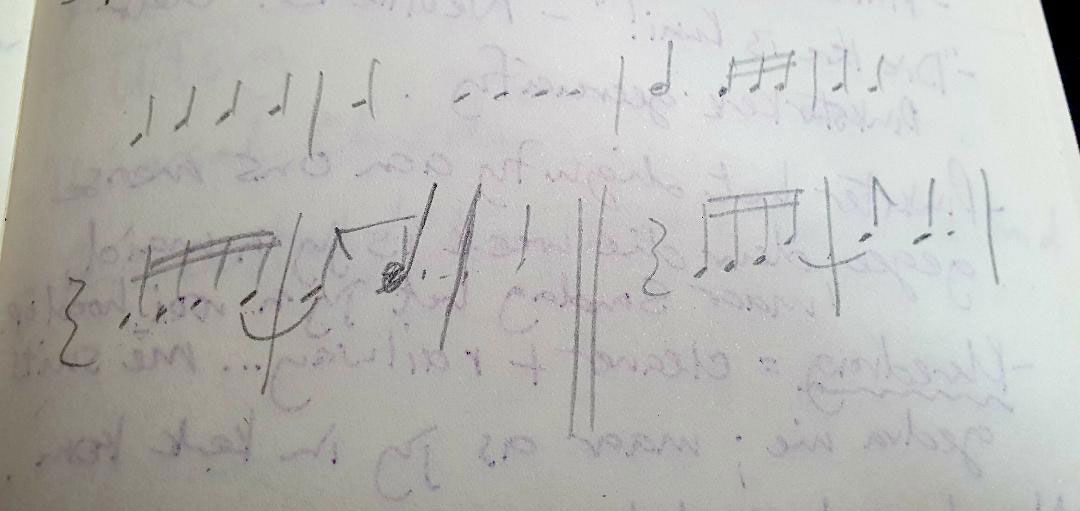 Hierdie koortjie is ’n nuwe koortjie wat deur Alton Zakay geskryf is. Die aksente van die koortjie val vir my op snaakse plekke, soos op die ’n. En die frase ‘die naam van’ word als op ’n opslag gesing. Daar is ’n snaakse sinkopasie op ‘Jesus’. ‘Je-’ word net voor die upbeat gesing, en die ‘-sus’ net na die downbeat. Ek is frustrated oor die ritme nie vir my sin maak nie en probeer dit agterna op papier vir myself uitwerk. Ek settle eventually op vier sestiende note op die tweede beat van die upbeat bar. Die laaste sestiende noot word getie met die eerste beat van die volgende bar, ’n agste noot, wat gevolg word deur ’n dotted crotchet.
