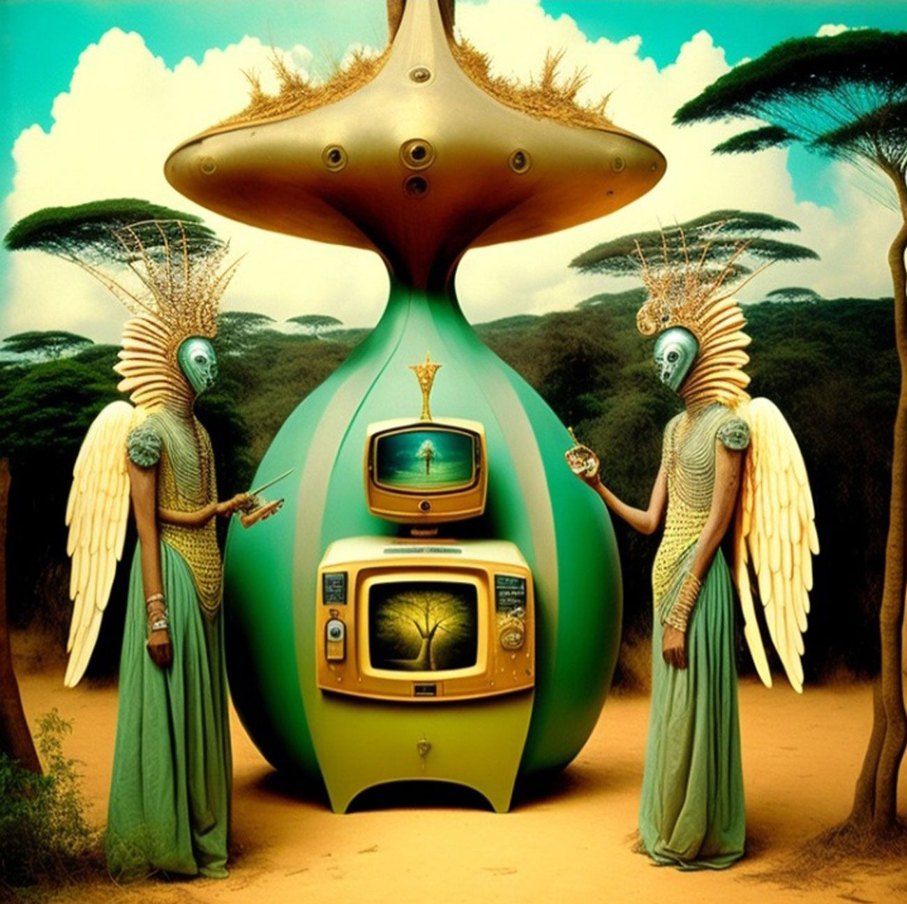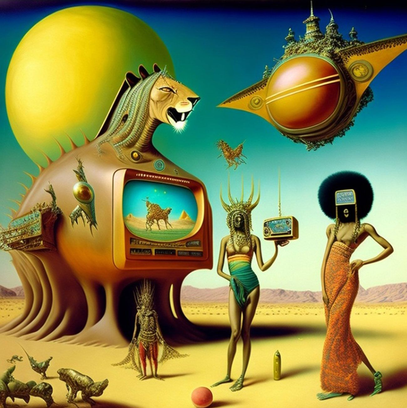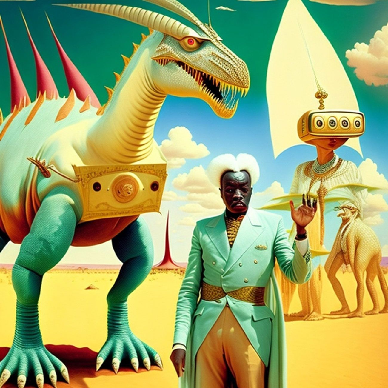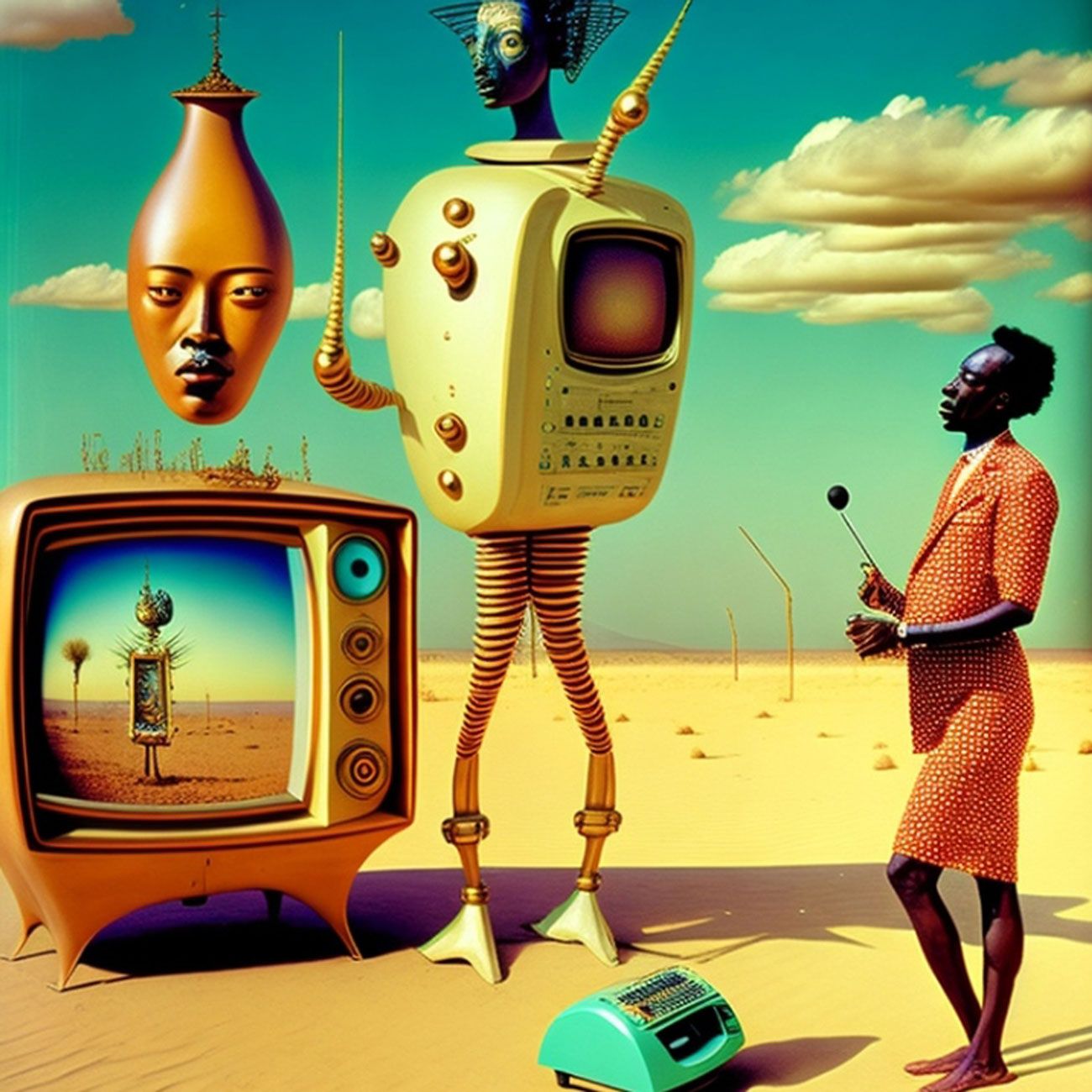 The Series How to Fight the Robot Army and Win? seeks to critically investigate the role of A.I and Surrealism in afro-electronic studies: Virtual bands and mythsciences in Immersive multimedia experiences. I use A.I Generated Images inspired by Afrosurrealism ideology, Immersive technology and telecommunications. I aim to create a multiverse based on a virtual art collective inspired by influences from Brenda Sisane, Credo Mutwa, Sun Ra, Alejandro Jodorowksy, Salvador Dali, Fela Kuti, Damon Albarn, Genesis P. Orridge and various Jazz musicians, Mystics, Counter Culture Narratives, using various digital tools with small devices to explore new epistemological discourses and sound inquiry.