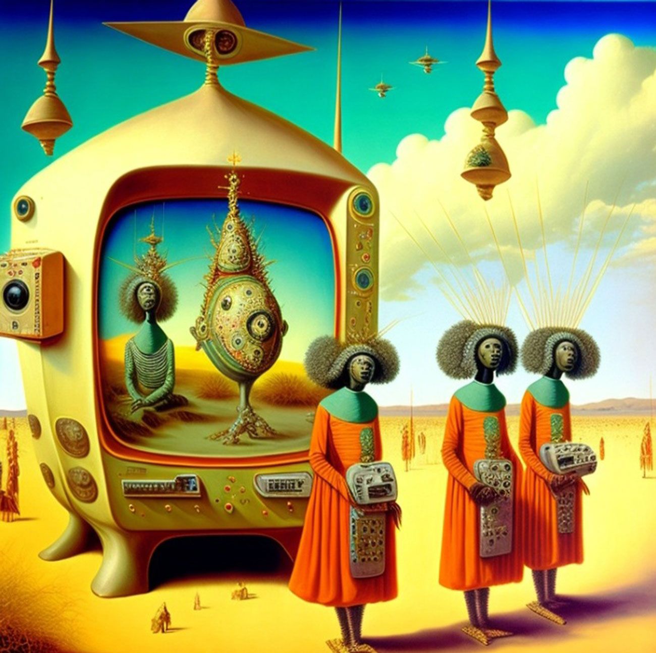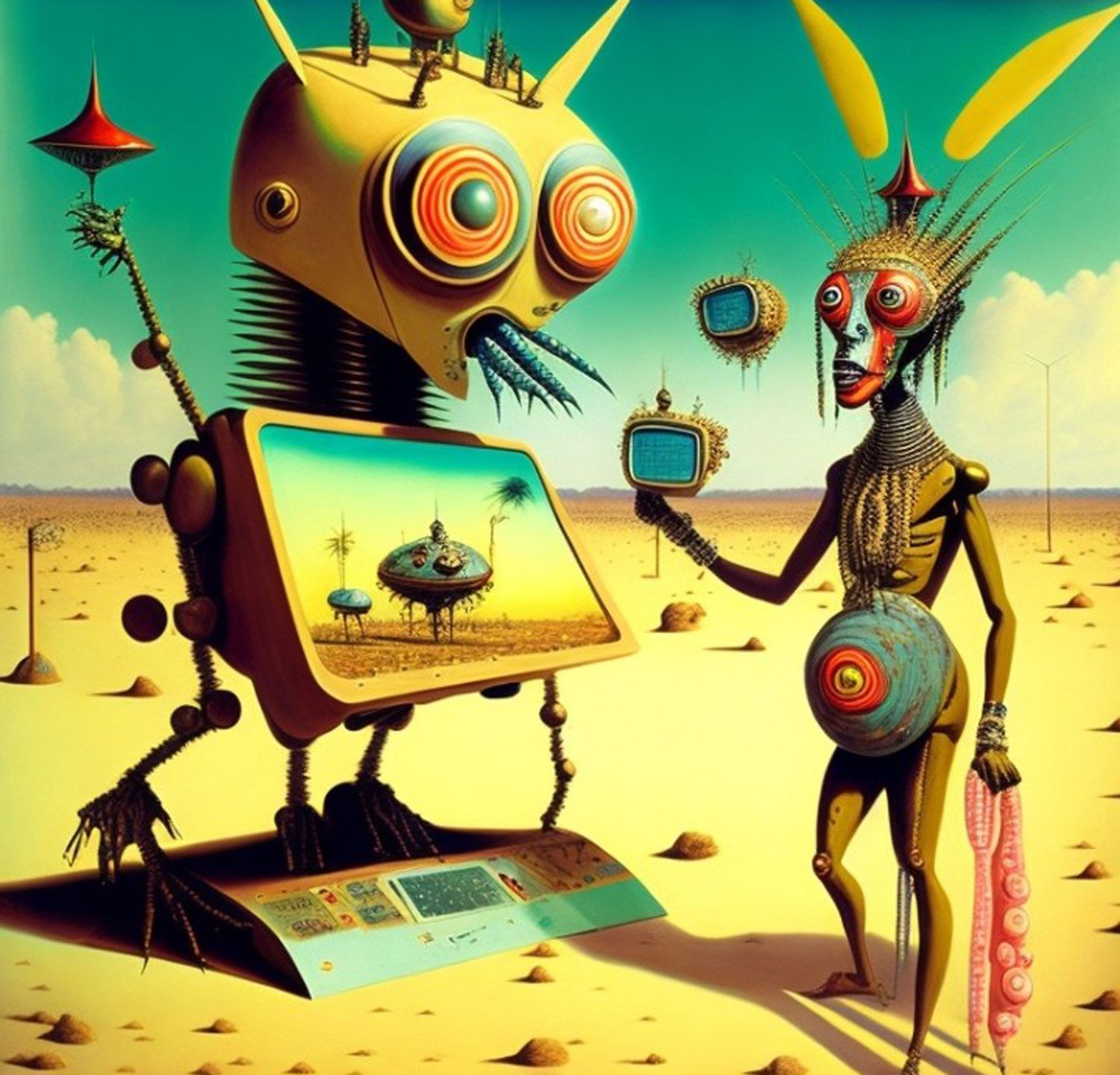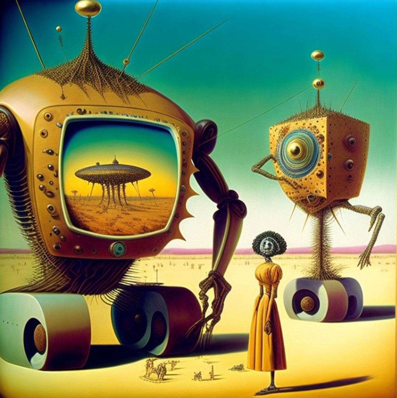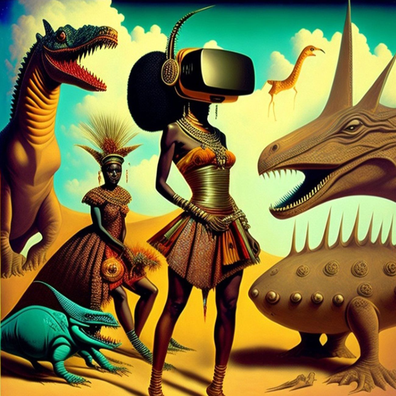 The Series How to Fight the Robot Army and Win? seeks to critically investigate the role of A.I and Surrealism in afro-electronic studies: Virtual bands and mythsciences in Immersive multimedia experiences. I use A.I Generated Images inspired by Afrosurrealism ideology, Immersive technology and telecommunications. I aim to create a multiverse based on a virtual art collective inspired by influences from Brenda Sisane, Credo Mutwa, Sun Ra, Alejandro Jodorowksy, Salvador Dali, Fela Kuti, Damon Albarn, Genesis P. Orridge and various Jazz musicians, Mystics, Counter Culture Narratives, using various digital tools with small devices to explore new epistemological discourses and sound inquiry.
