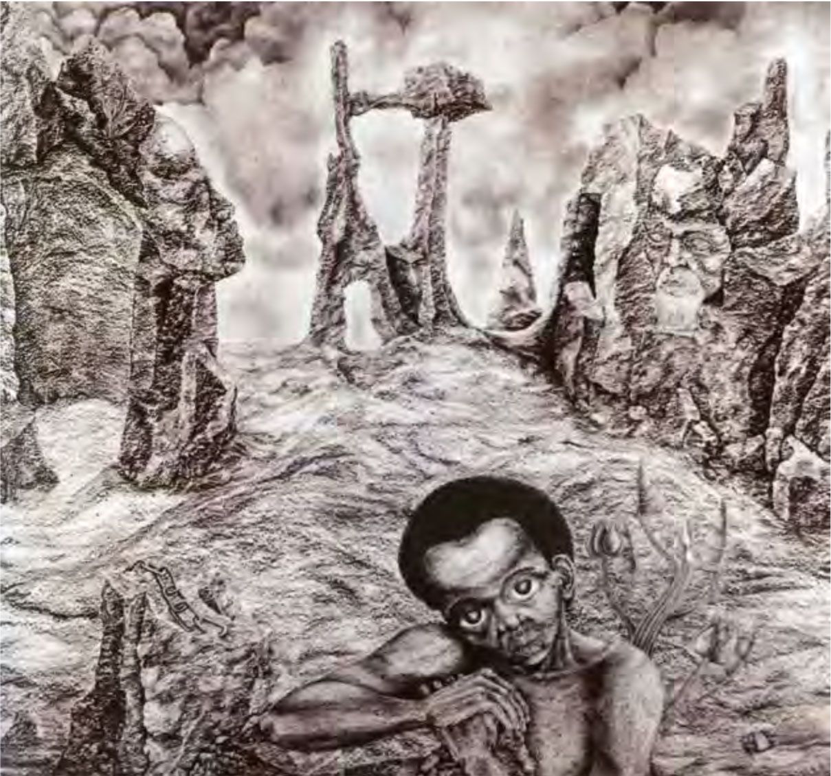 Motlhabane Mashiangwako, Soul of a Dying Black Man, 1979. Pencil and charcoal on paper, 148 x 110cm.