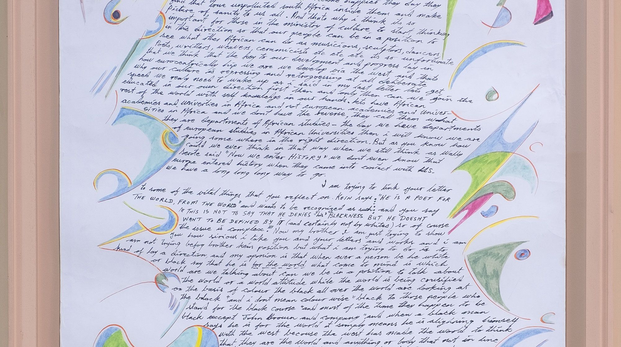 Tladi says he has written more letters to artists than anyone else, and he is very proud of that contribution (L.Tladi, personal communication, October 17, 2022). He has an entire body of work dedicated to artists that act as a form of redress; he celebrates artists because society fails to do so. At this stage in his life, Tladi is working at an intense pace and is elated to discuss his paintings and drawings. Tladi’s deep commitment to the traditional role of the artist as one who awakens the senses, particularly those senses that were “amputated” by apartheid, provides an important source for scholars to make connections to contemporary artists, and social and political movements in the African world.